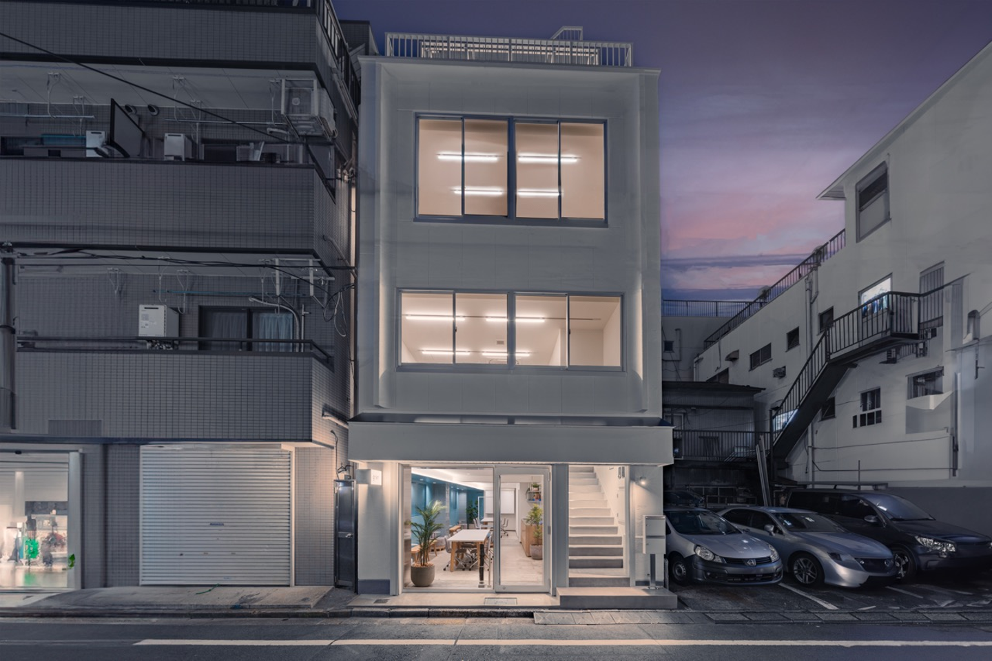住居兼事務所だったビルは、設備をはじめ、内装、フロントサッシや外観も一新し、コンパクトながら存在感のあるビルへと再生することのできたプロジェクトとなりました。