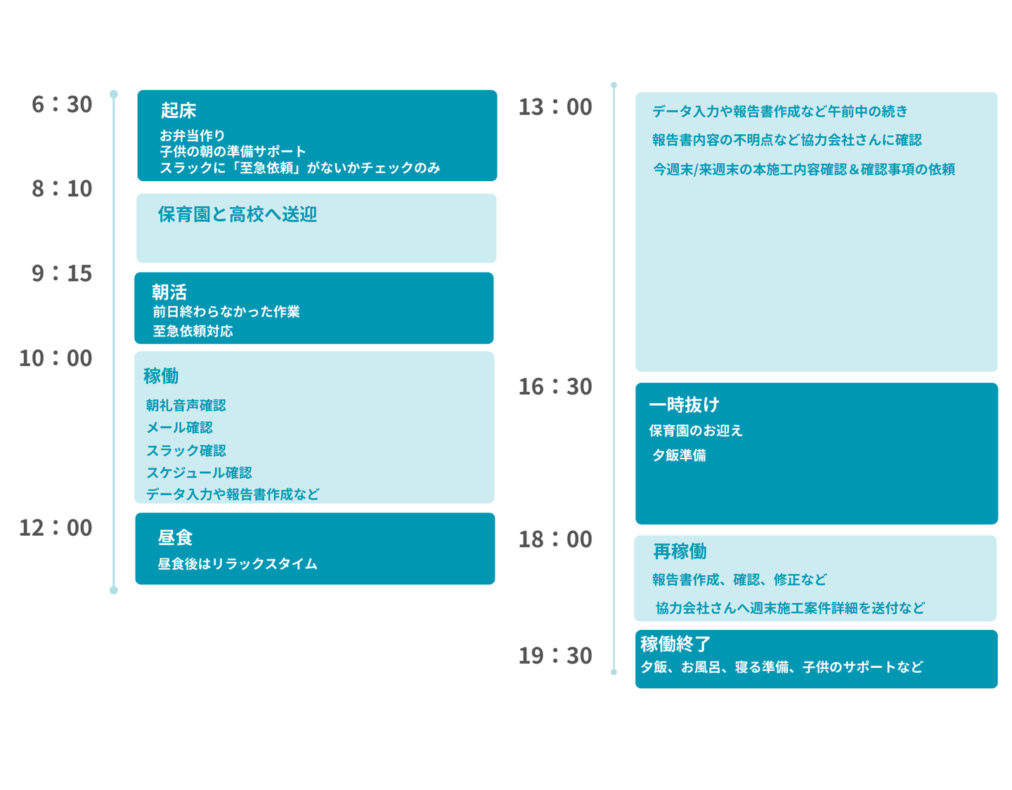派遣からパート、その後は時短正社員へ、沖縄への移動、時短勤務、リモートなど、働き方を変える局面が何度かありましたが、その都度相談しながら決められたのは本当にありがたかったです。