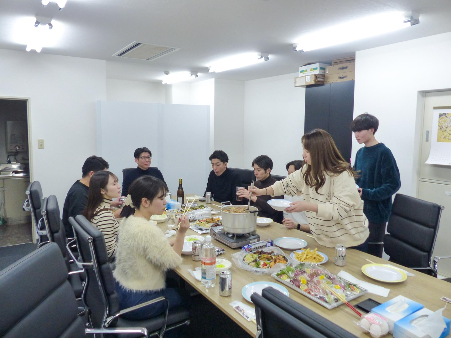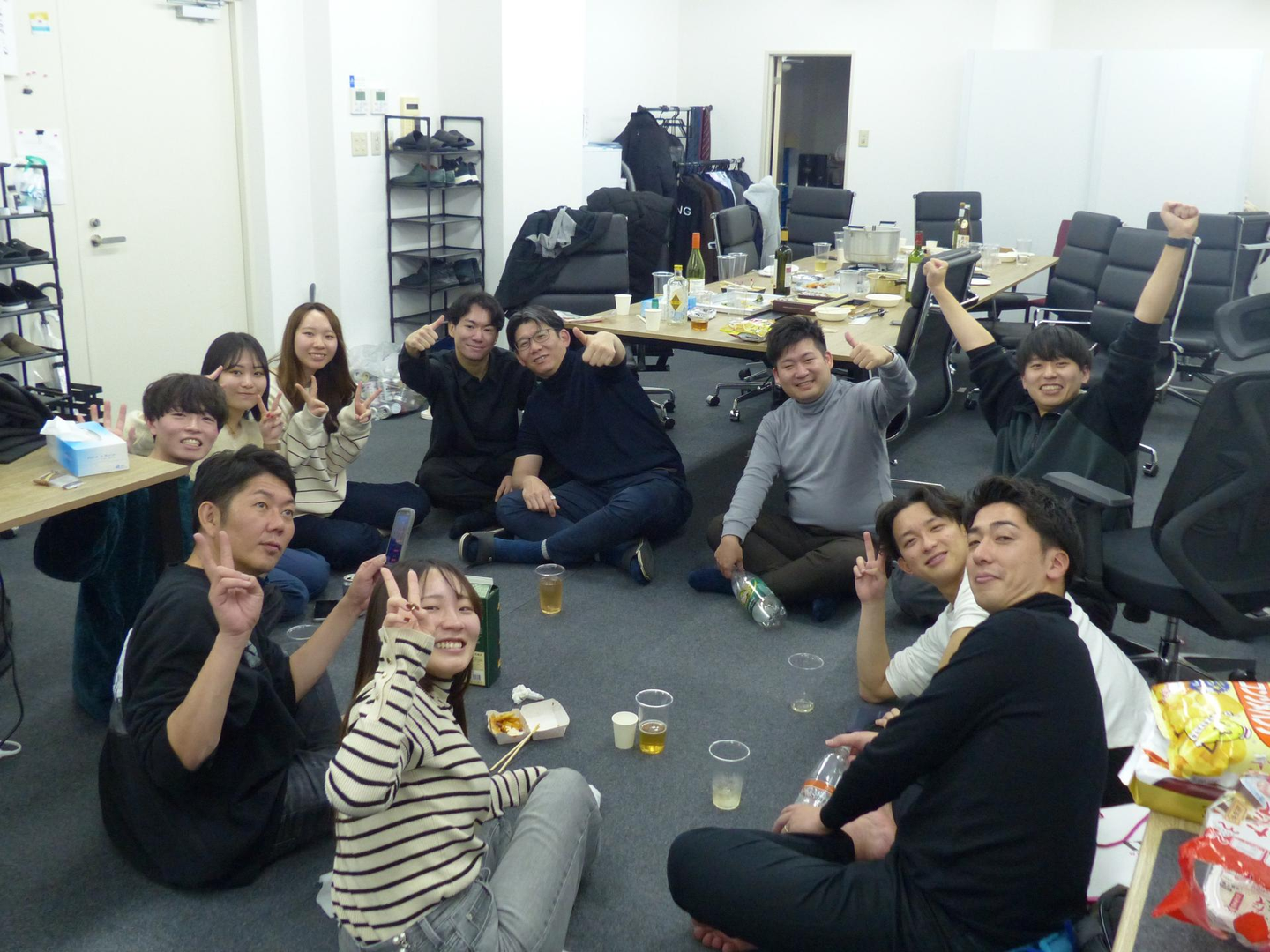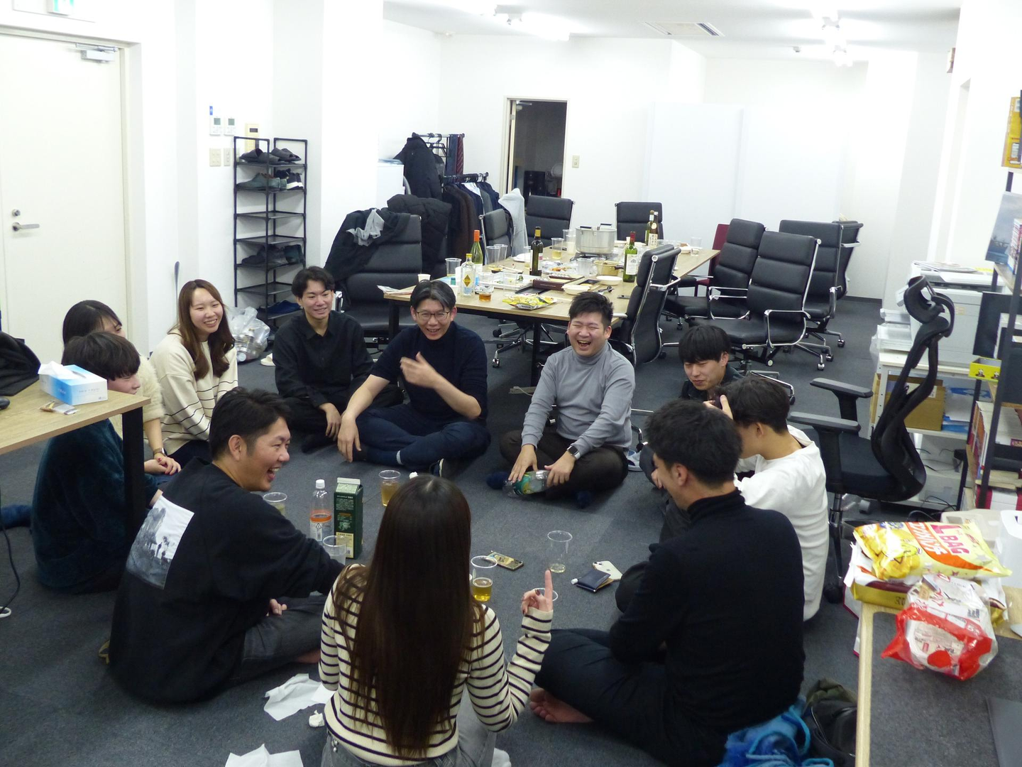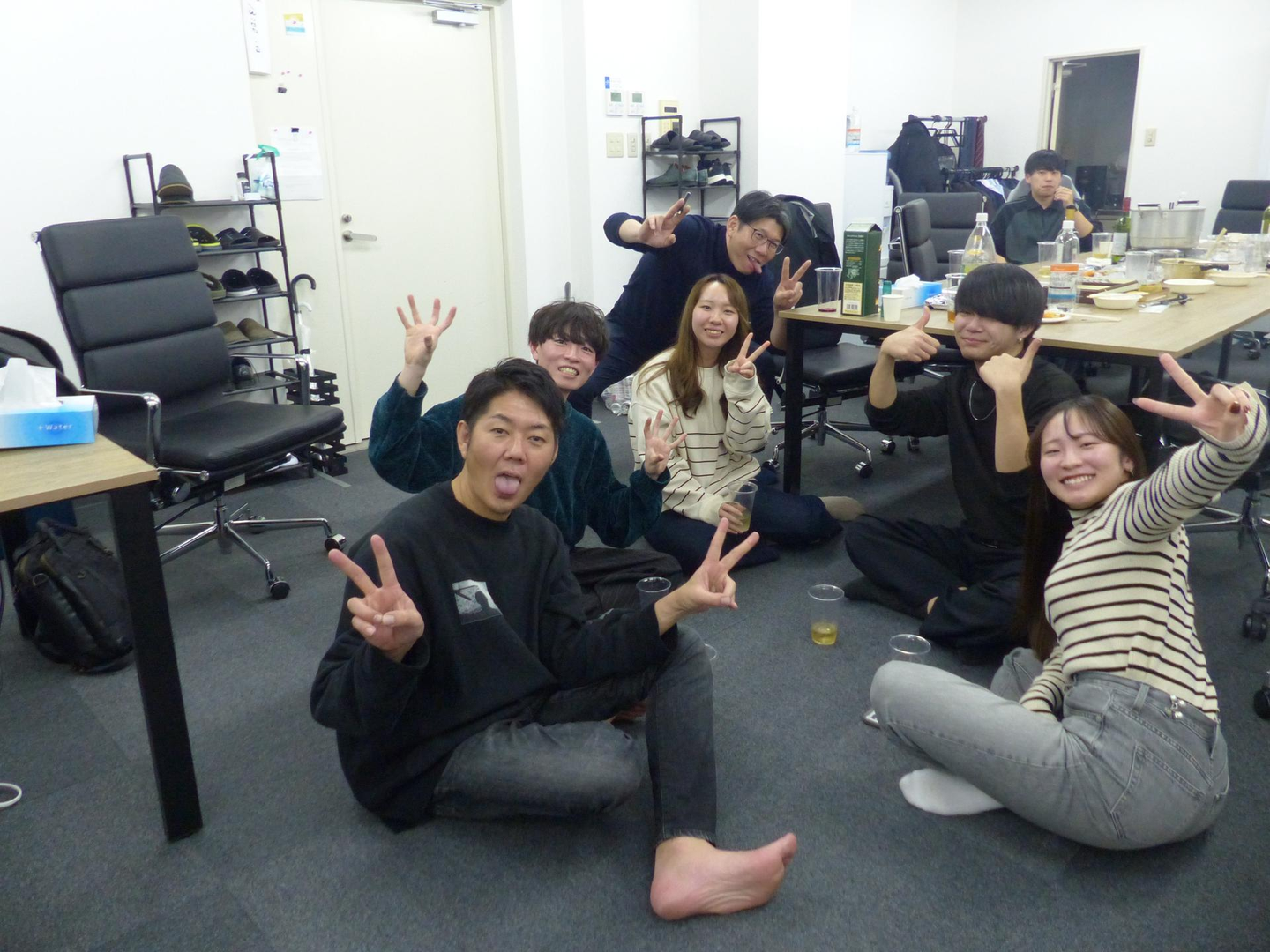 実は今回の忘年会、普段はリモートで働いてくれているインターン生が2人、さらには既にインターンを卒業しているOBが2人もオフィスに来てくれていました!