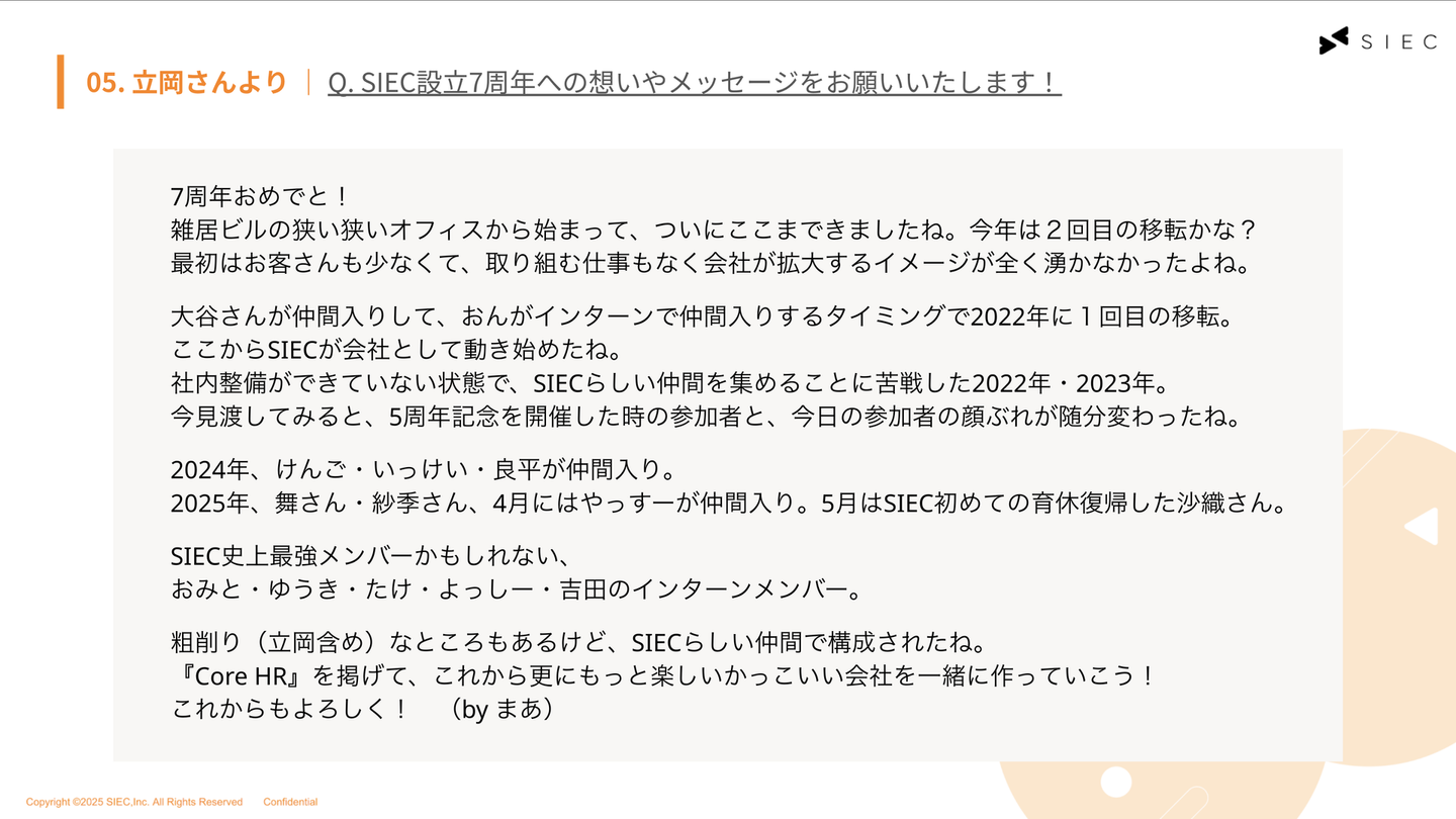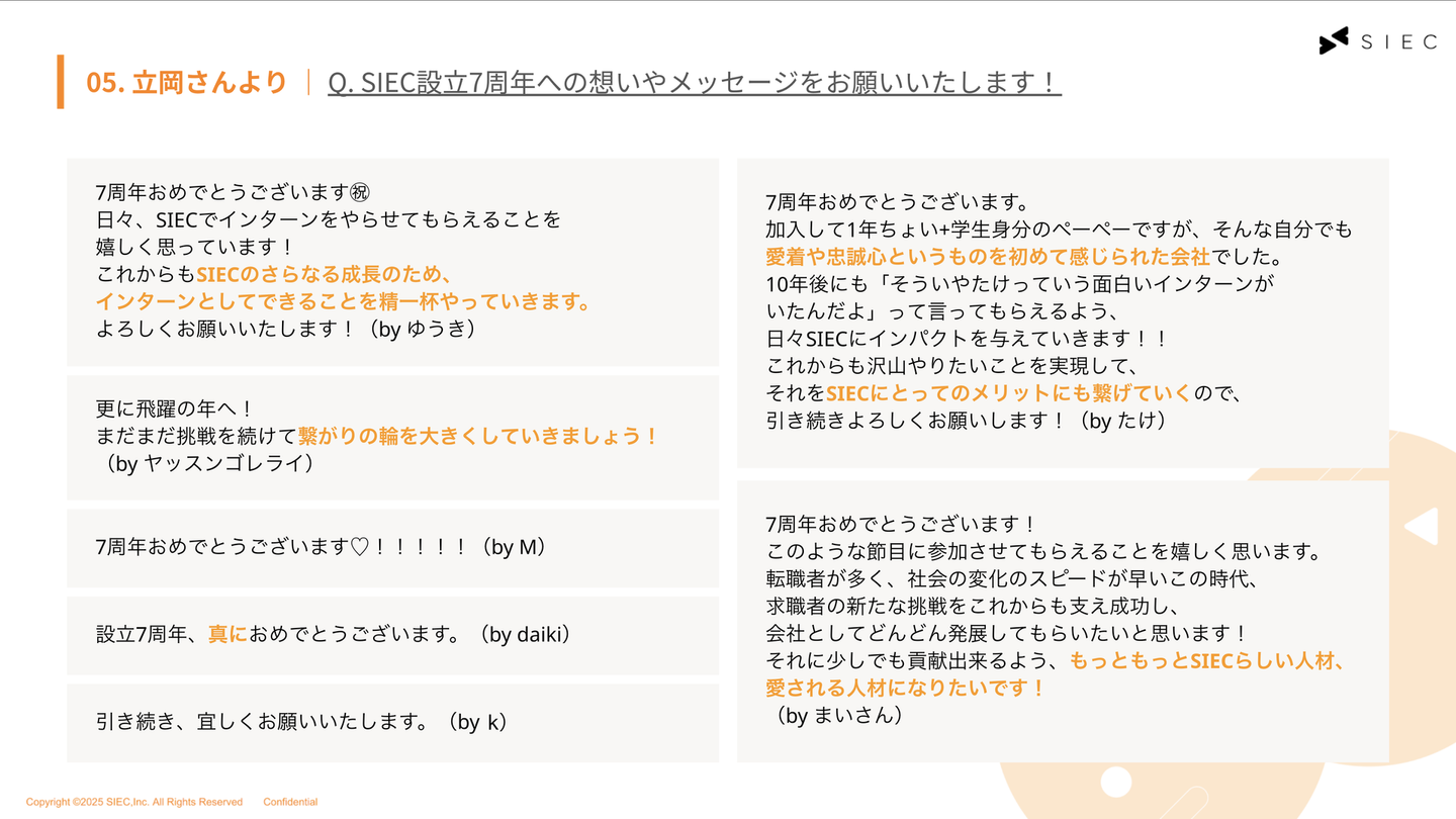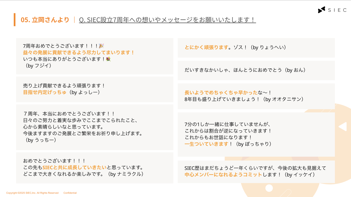 Q. SIEC設立7周年への想いやメッセージをお願いいたします!