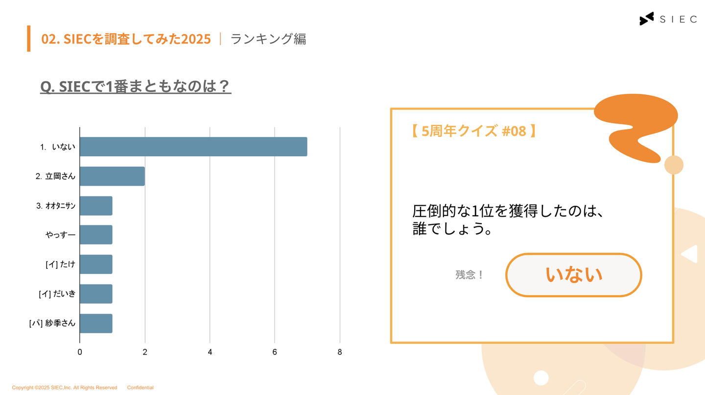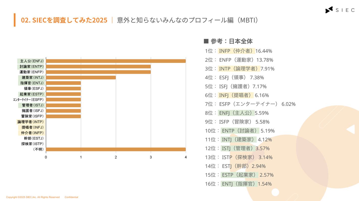 1つ目のSIECらしさを象徴するポイント(=ツッコミどころ)は、2025年5月時点の在籍者のMBTIです。