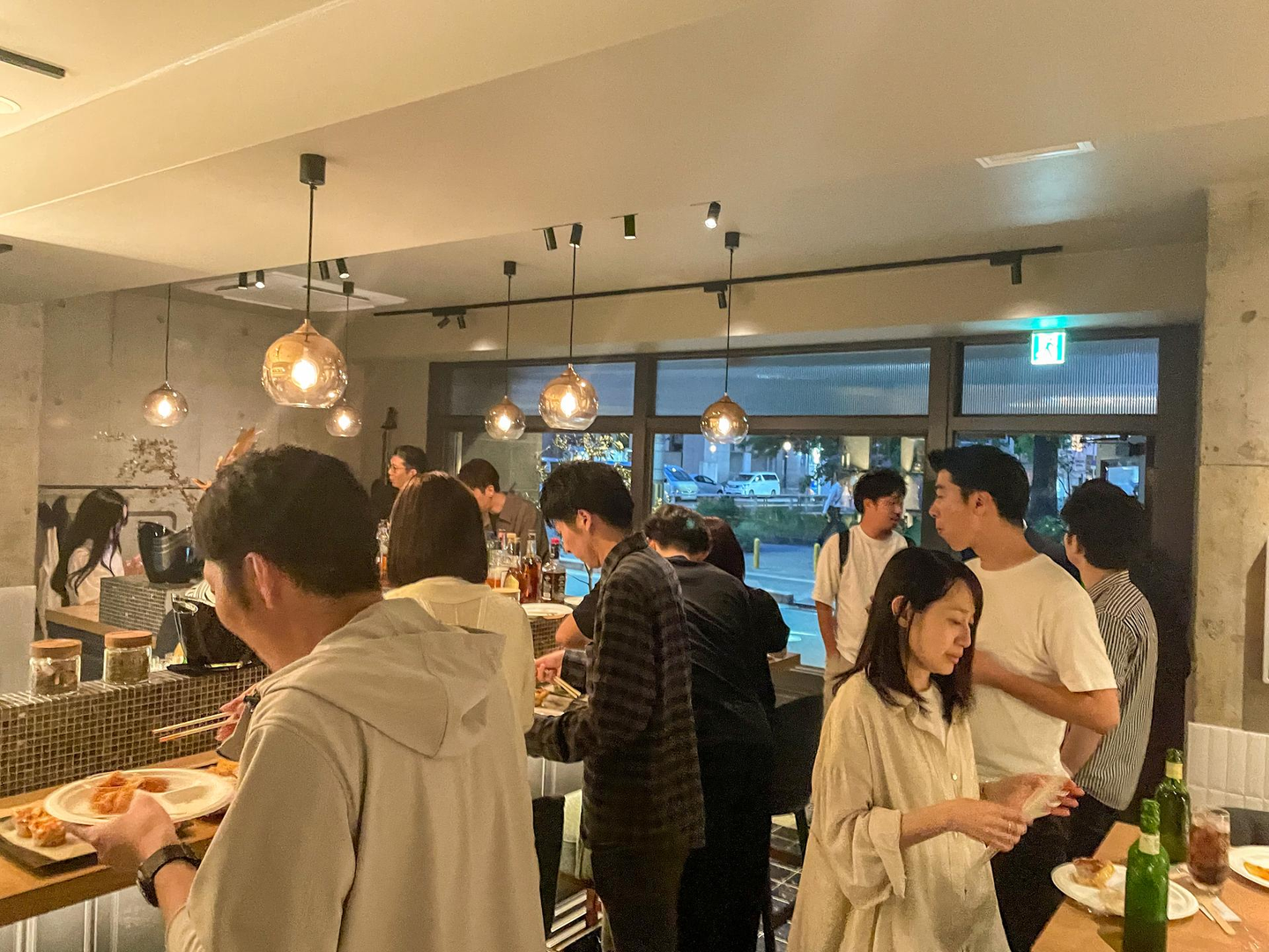 立岡さんのお知り合いのお店を貸し切らせていただき、わちゃわちゃとした雰囲気の中、自由にコミュニケーションをとっている様子でした🥂