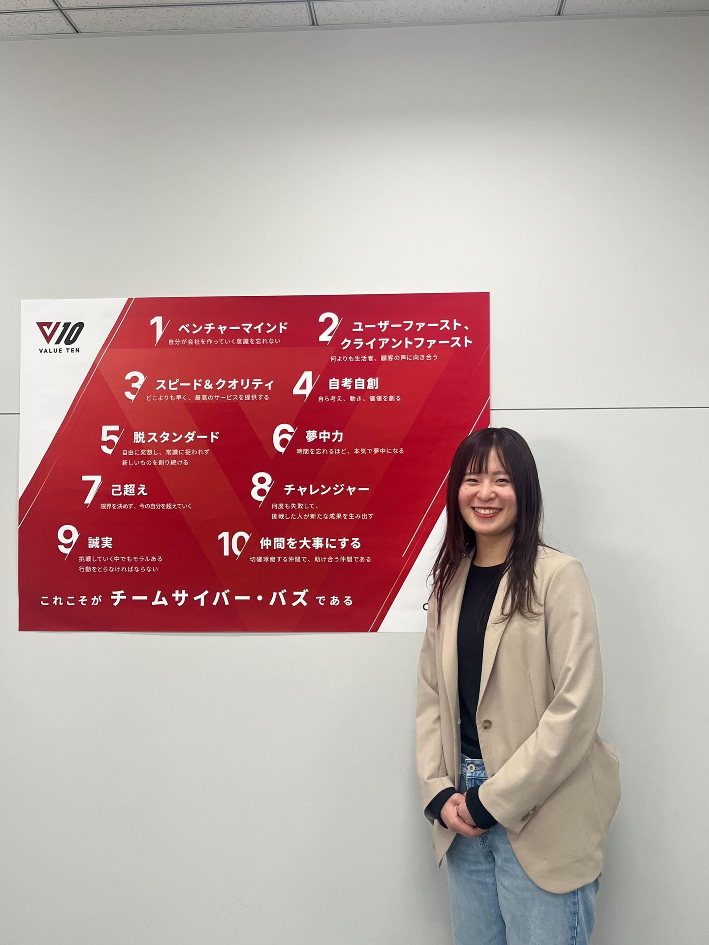 また、若いメンバーが多いこともあり、「まずやってみよう!」というチャレンジ精神が根付いています。前職では、ある程度決まった枠の中で動くことが多かったのですが、ここでは「やりたい」と手を挙げれば任せてもらえる環境があります。とにかく活気があって、前向きなエネルギーにあふれている。それがサイバー・バズらしさだと感じています。