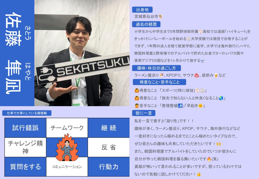 HIPHOPやサウナ好きというユニークな趣味を持つ彼は、2年後の起業を見据える即戦力です!