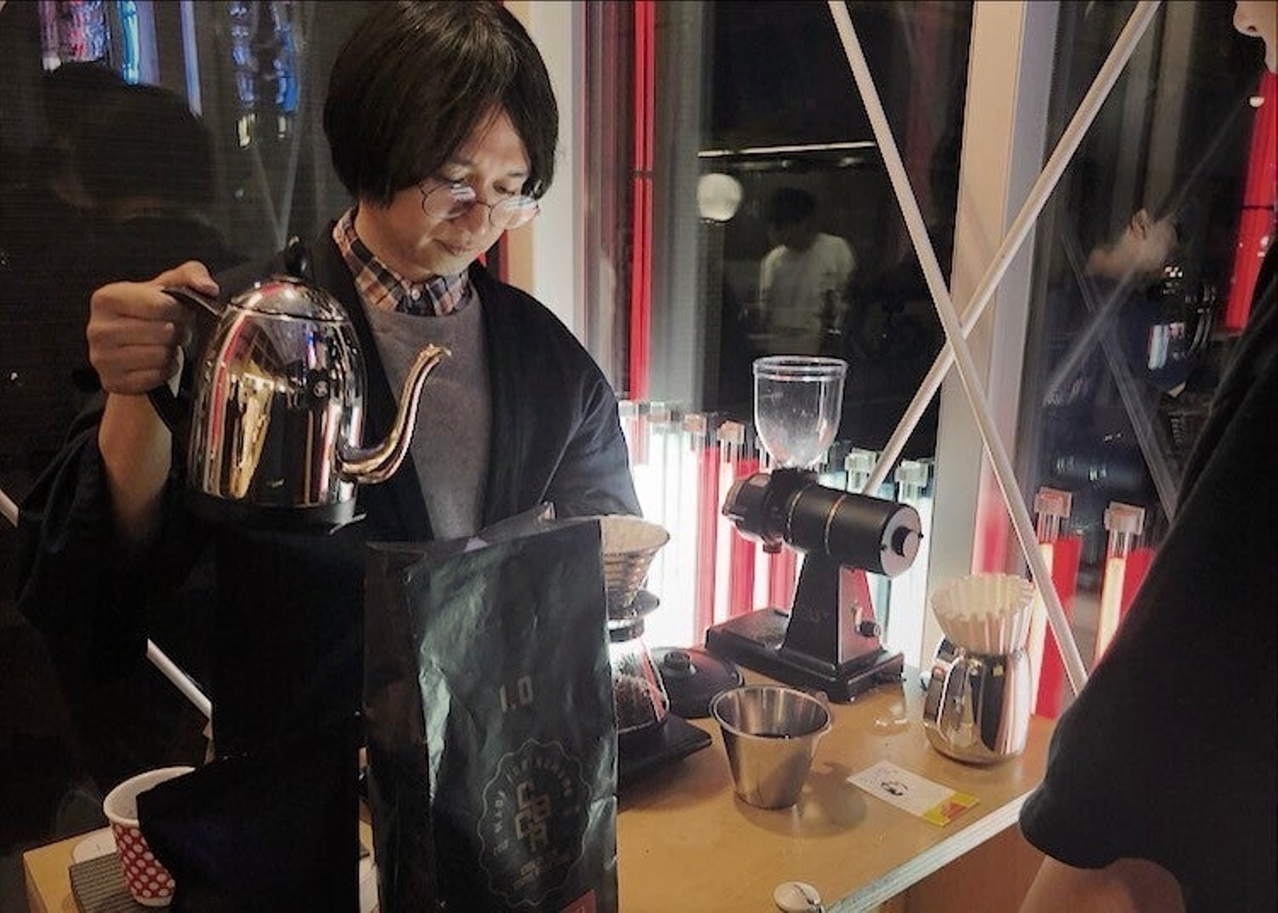 イベントで1日店長をした時の写真。バリスタの友人とコーヒーを淹れました