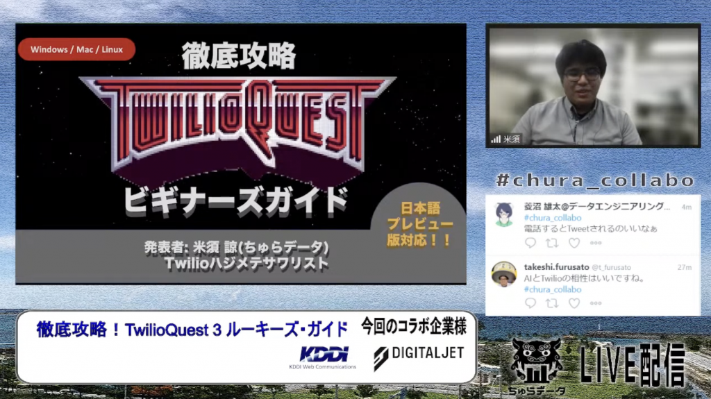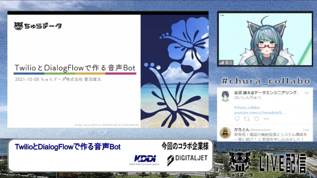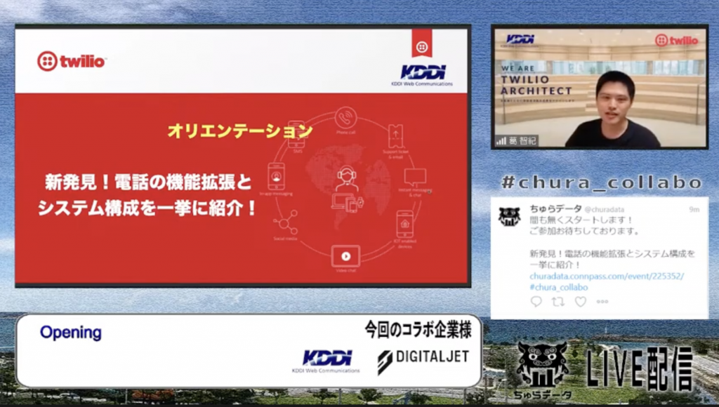 ちゅらデータではさまざまな企業との交流を通し、最新技術の情報発信や社員の技術力・分析力の向上を目的に ちゅらコラボ(#chura_collabo)という取り組みを行っています。 今回のレポートは2021年10月8日(金)に行われた 『新発見!電話の機能拡張とシステム構成を一挙に紹介!』のレポートです。電話やSMSなどのクラウドコミュニケーションAPI「Twilio」を提供する KDDIウェブコミュニケーションズ さん、Webやアプリの開発だけでなくTwilioを使った開発も得意な DIGITALJET さ