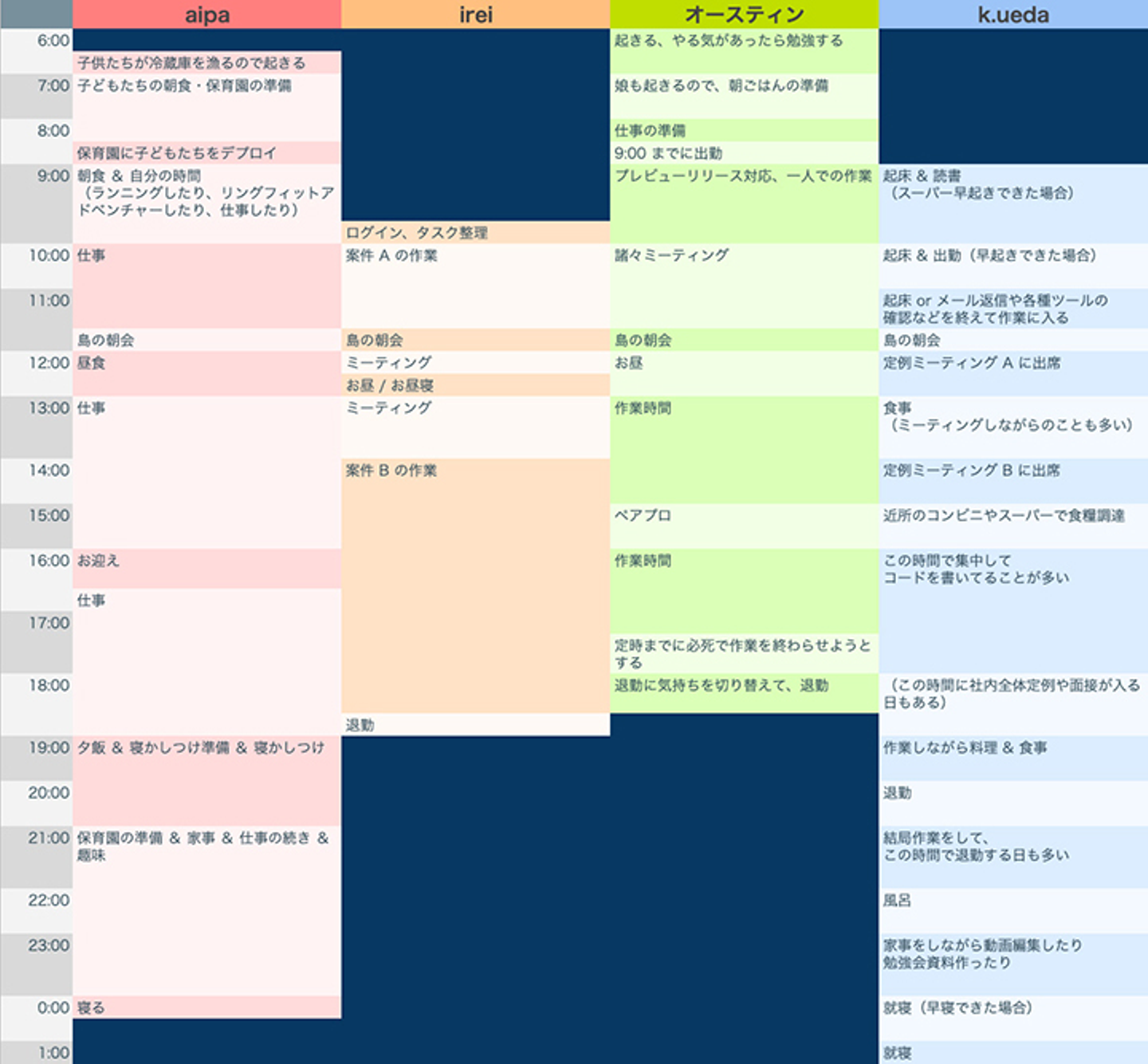夜は早めに寝かしつけて布団から起き上がれたら(これが鬼門)、保育園の準備をしたり、妻と一緒に好きな YouTube チャンネルを見たり、お互い好きなことを眠くなるまで続けるという感じです。