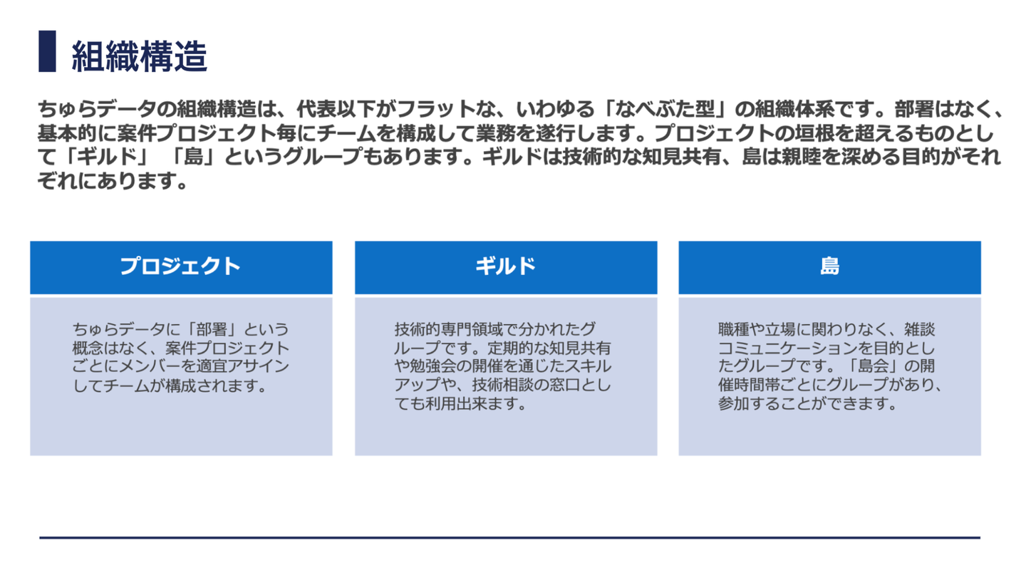 ちゅらデータが実践している「なべぶた型」組織構造についても紹介させていただきました。