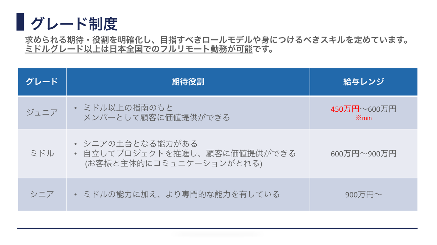 就職先を検討する際に、気になる収入についてや入社後の研修、ちゅらデータの社内の雰囲気について説明させていただきました。初任給は気になりますよね。当社の新卒入社の年収は「大学卒/450万円」大学院卒/470万円」で設定されています。