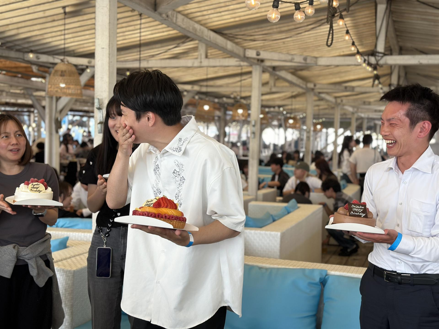 その後はサプライズで5月生まれの方のお誕生日祝いが行われ、社員の喜ぶ顔がたくさん見れたBBQとなりました。
