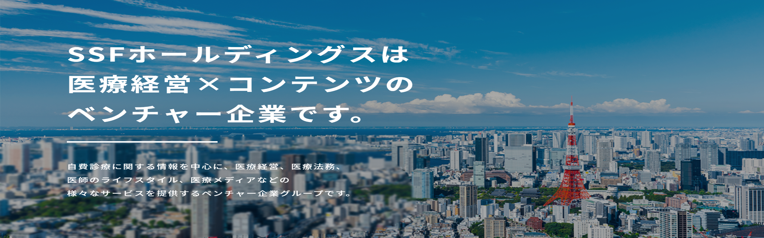 我々は医療経営×コンテンツのベンチャー企業です。 美容医療をはじめとする自費診療に関する情報を中心に、 医療経営、医療法務、医師のライフスタイル、医療メディアなどの 様々なサービスを提供するベンチャー企業グループ。 ★SSFグループの使命★ 「自費診療で市場を作り、医療を支える。」 少子高齢化や医療費の高騰によって、皆保険制度の見直しなど、医療経営が苦しくなっています。 自費診療は医療経営において今後必須となる中、正しい形で自費診療を推進し、医療経営を支えていきます。