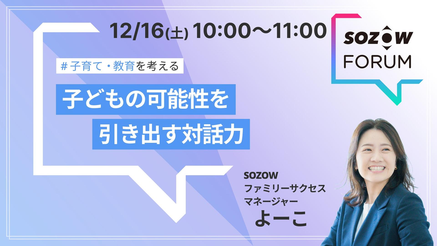 12月16日(土)に無料オンラインセミナー「SOZOW FORUM 〜家庭で語ろう 子どもの今と未来〜 」を開催します!