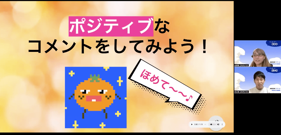 はじめてのオンラインスクールに緊張やドキドキもあると思うので、まずはスタッフ一同で明るくあたたかく迎え入れ。