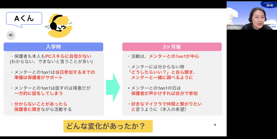 SOZOWスクールの子どもたちは、みんな好きなアバターとニックネームで活動。個性豊かなニックネームが盛りだくさんです!