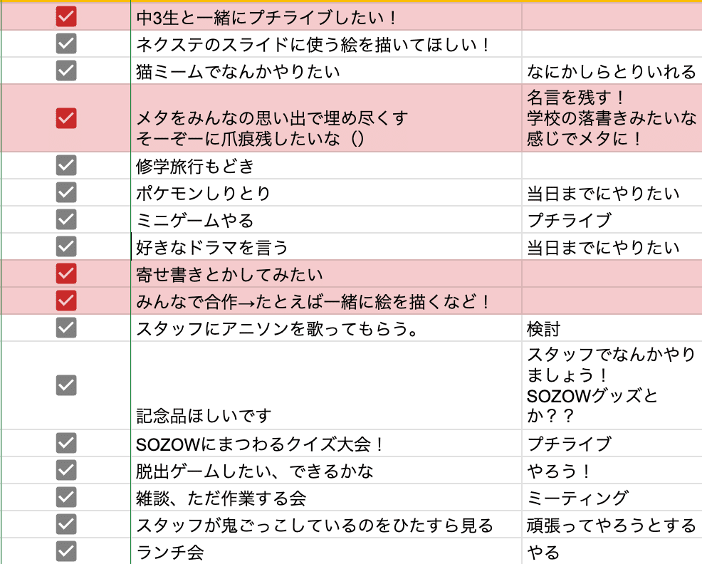 みんなでバーチャル空間に集まり、出て来たアイデアはこんな感じ。