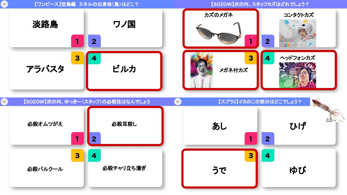 4択クイズ✖️4題! 特にスタッフをいじるクイズは大盛り上がり(笑)