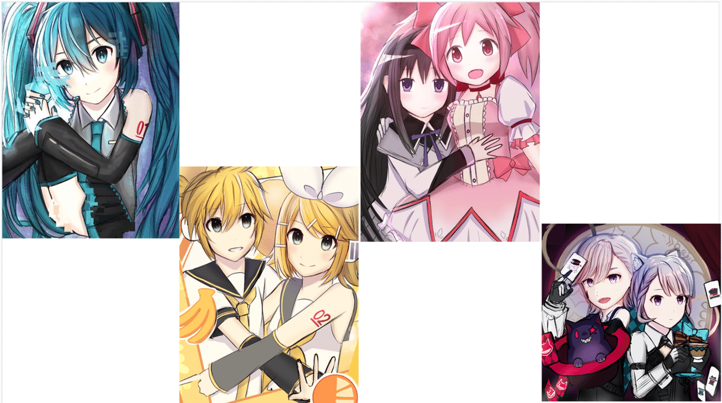 1枚目:初音ミク、2枚目:15周年の日、3枚目:運命、4枚目 show time