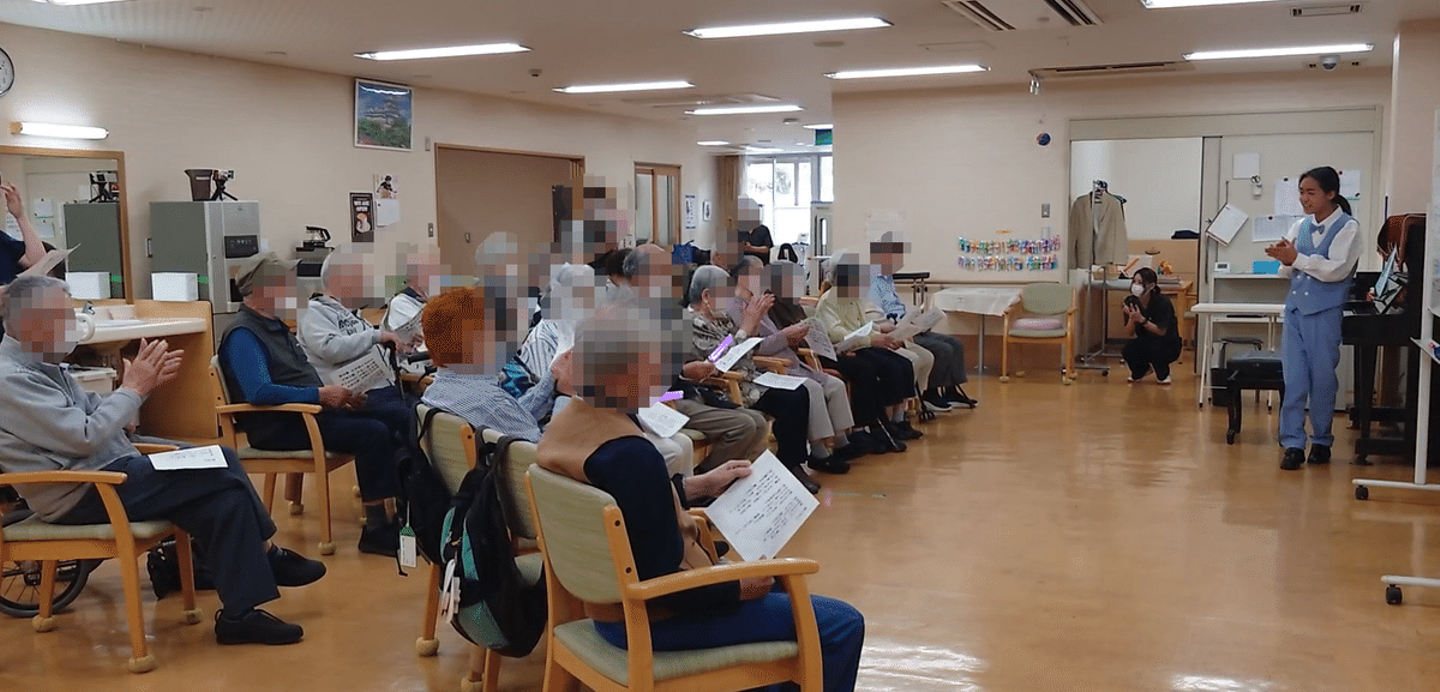 デイサービスでのボランティア訪問演奏の様子。