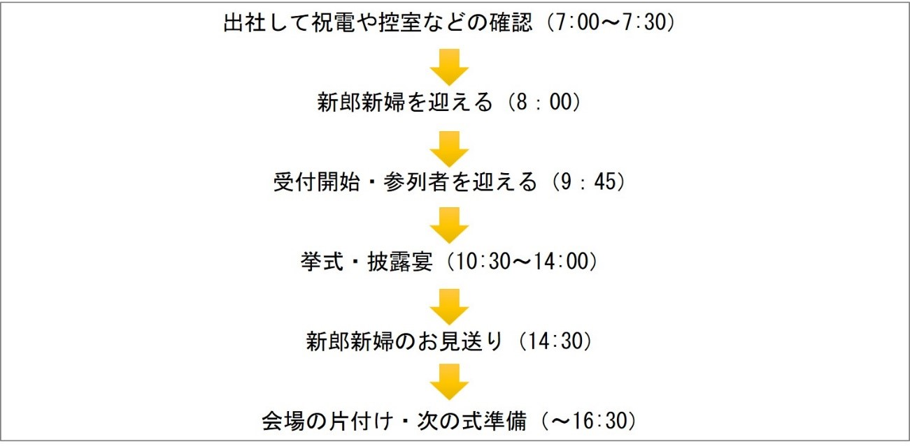 ―弊社の選考は、学生も企業も相互理解を深められるよう短い面接ではなく、グループワークや合宿なども用意しています。針生さんにも弊社の想いをしっかりと受け止めてくださっていたのですね!現在は、ウェディングプランナーということですが、1日の流れに沿って、教えて下さい