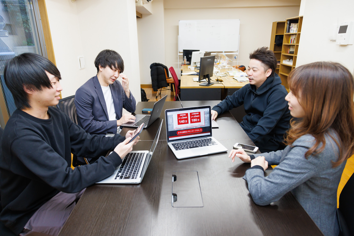 営業を中心に業務を行なっています。昨年10月までは集客・広告サービスを中心に営業していましたので、サービスの導入からLP(ランディングページ)作成、広告運用までを担当していましたが、11月から美容機器販売事業が立ち上がりましたので、美容機器の営業メインで動いています。