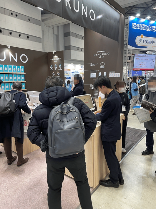 (東京のビックサイトで行われた展示会で説明する臼居さん)