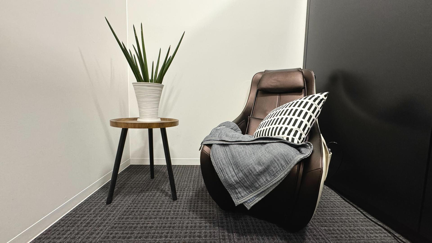 こちらはリクエストを受けて設置したマッサージチェア。執務スペースの一角に設置しています。