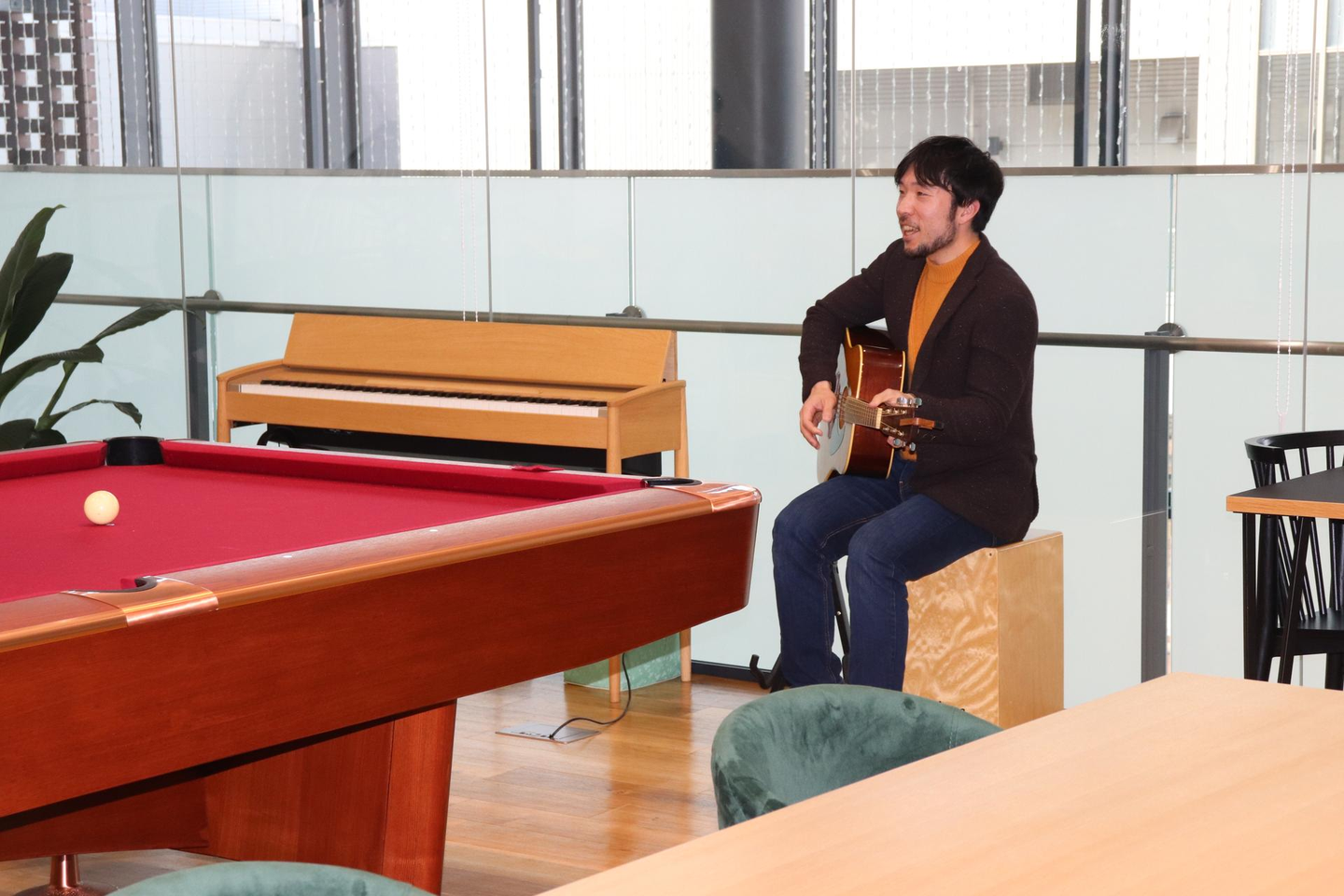 役員の上野は昔バンドマンだったこともあり、演奏しながらチルタイムを楽しむ姿を見かけます。リクエストすれば弾き語りが聴けるかも?上野のインタビューに関しては、下記にも記載しておりますので、ぜひご覧ください!