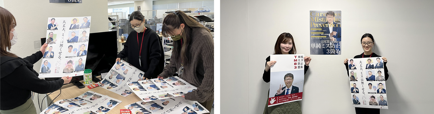 出社するとフロアの至るところに3種のポスターが貼り出されているため、自然と目がいくようになっていると思います。業務中に【単純ミス防止3箇条】をハッと思い出し、意識してもらえたら嬉しいです🌠