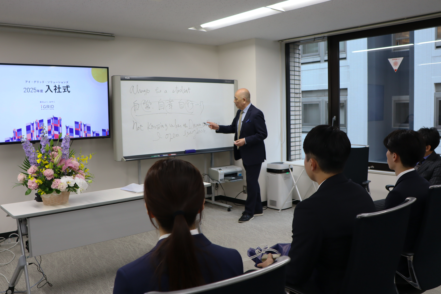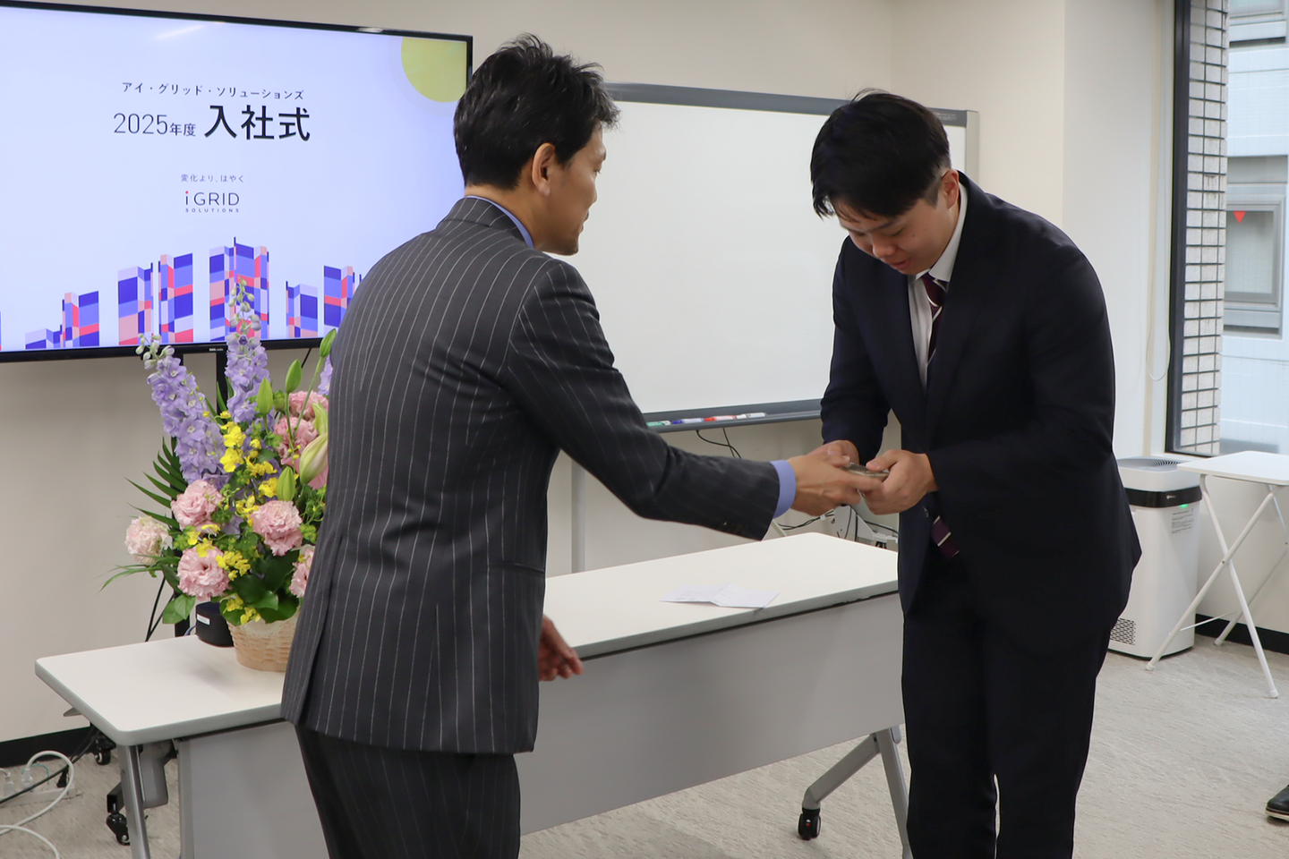4月1日、2025年度入社式を開催しました。今年は3名の新卒社員が、アイ・グリッドの新しい仲間として加わってくれました。