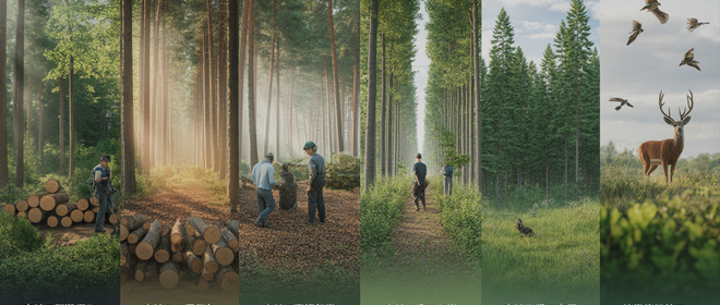 FORESTGROUPの原点は、“森と人が共に笑って生きること”。「山林を資源化し、循環する里山をつくる」というビジョンのもと、地域と連携したコミュニティフォレストリー(地域主体の森林経営)を実践しています。