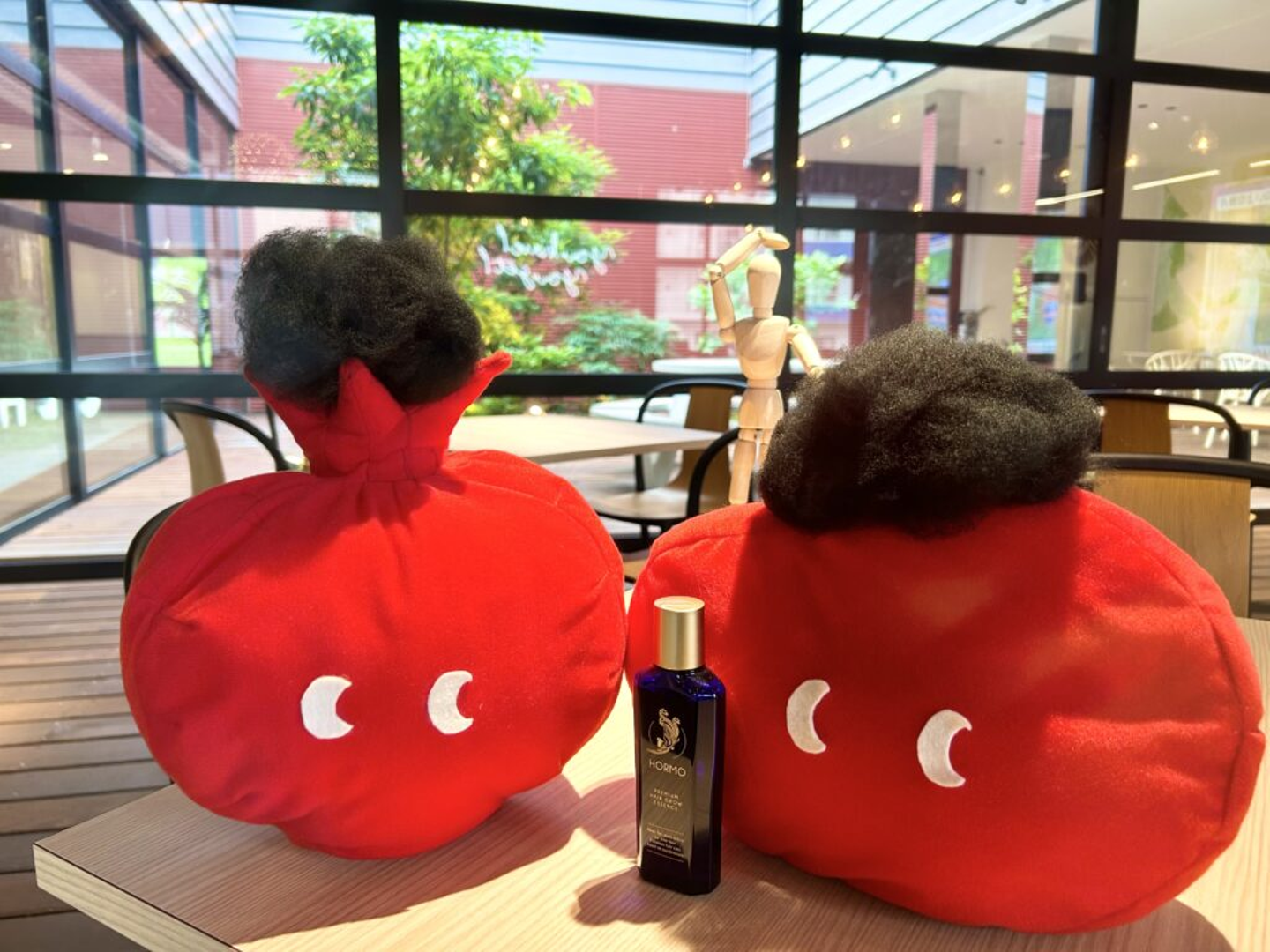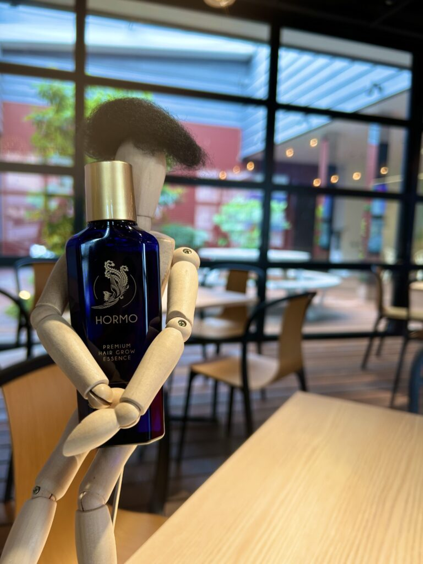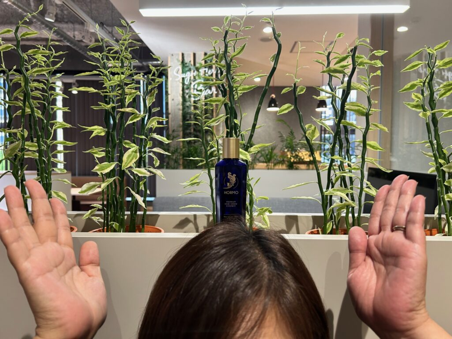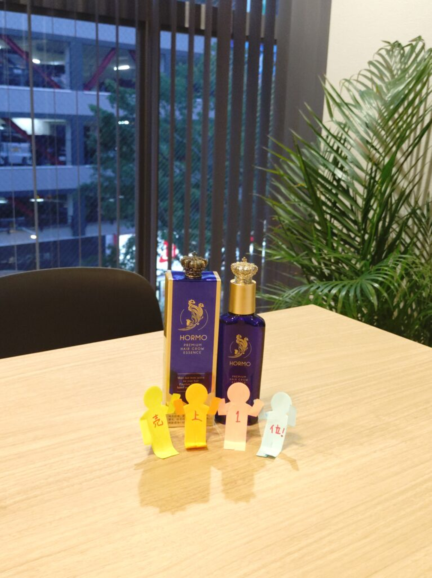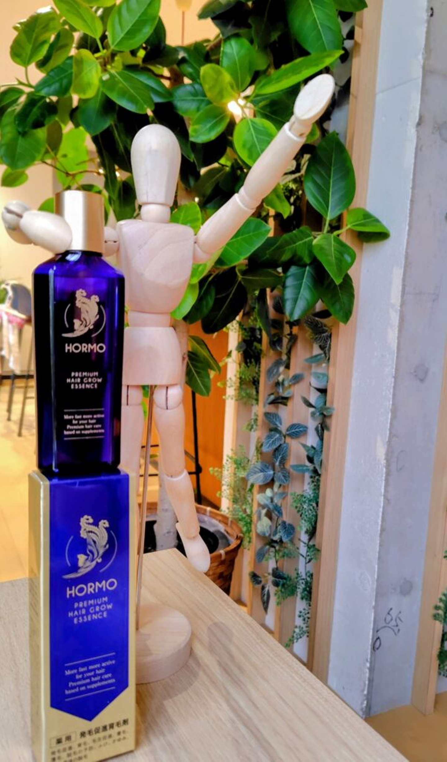 ついにHORMOを手に入れた棒人間。健やかな髪が育ちますように!商品を縦積みにすることで、上へ上へと成長していく前向きなイメージが伝わります。