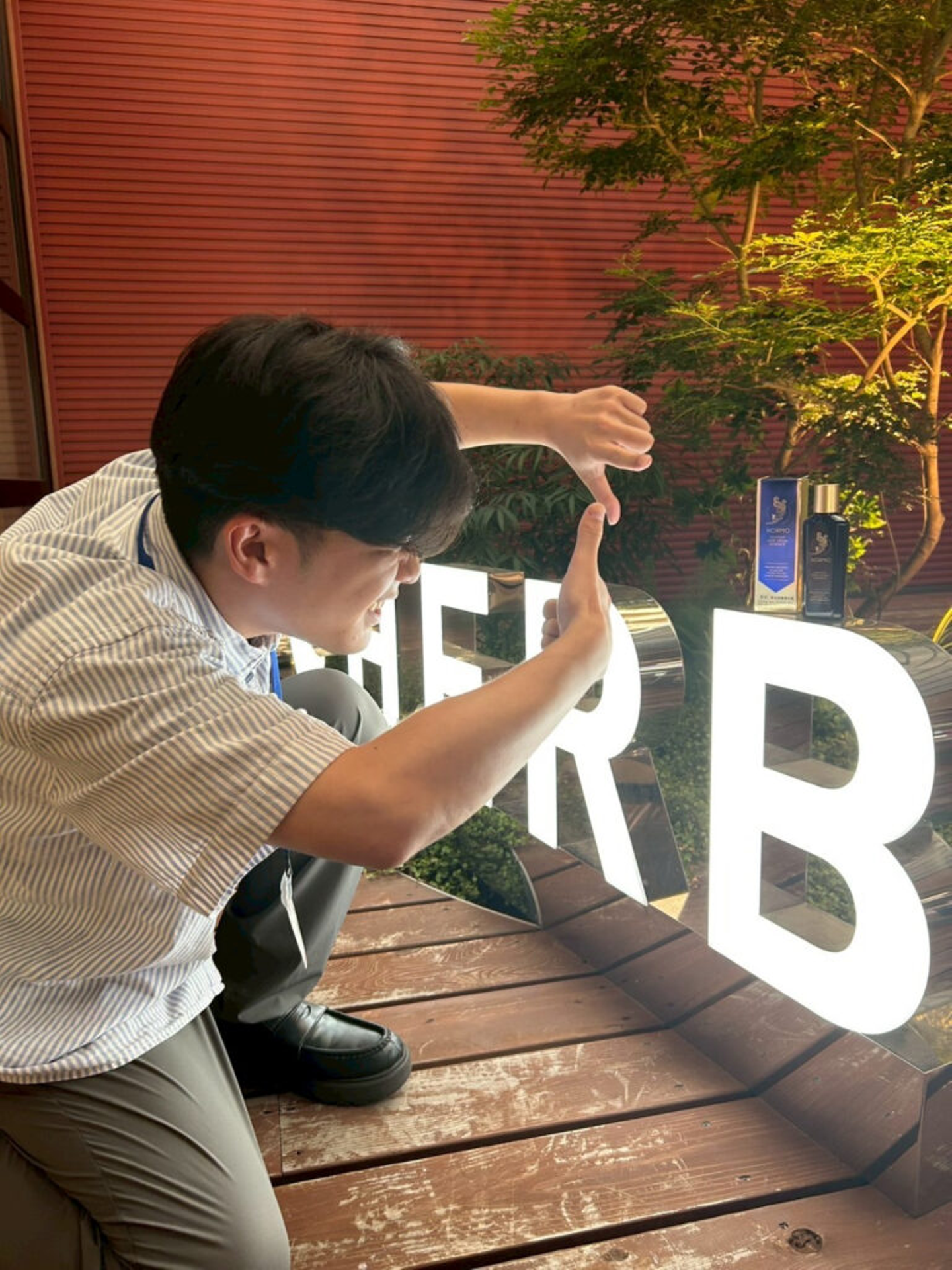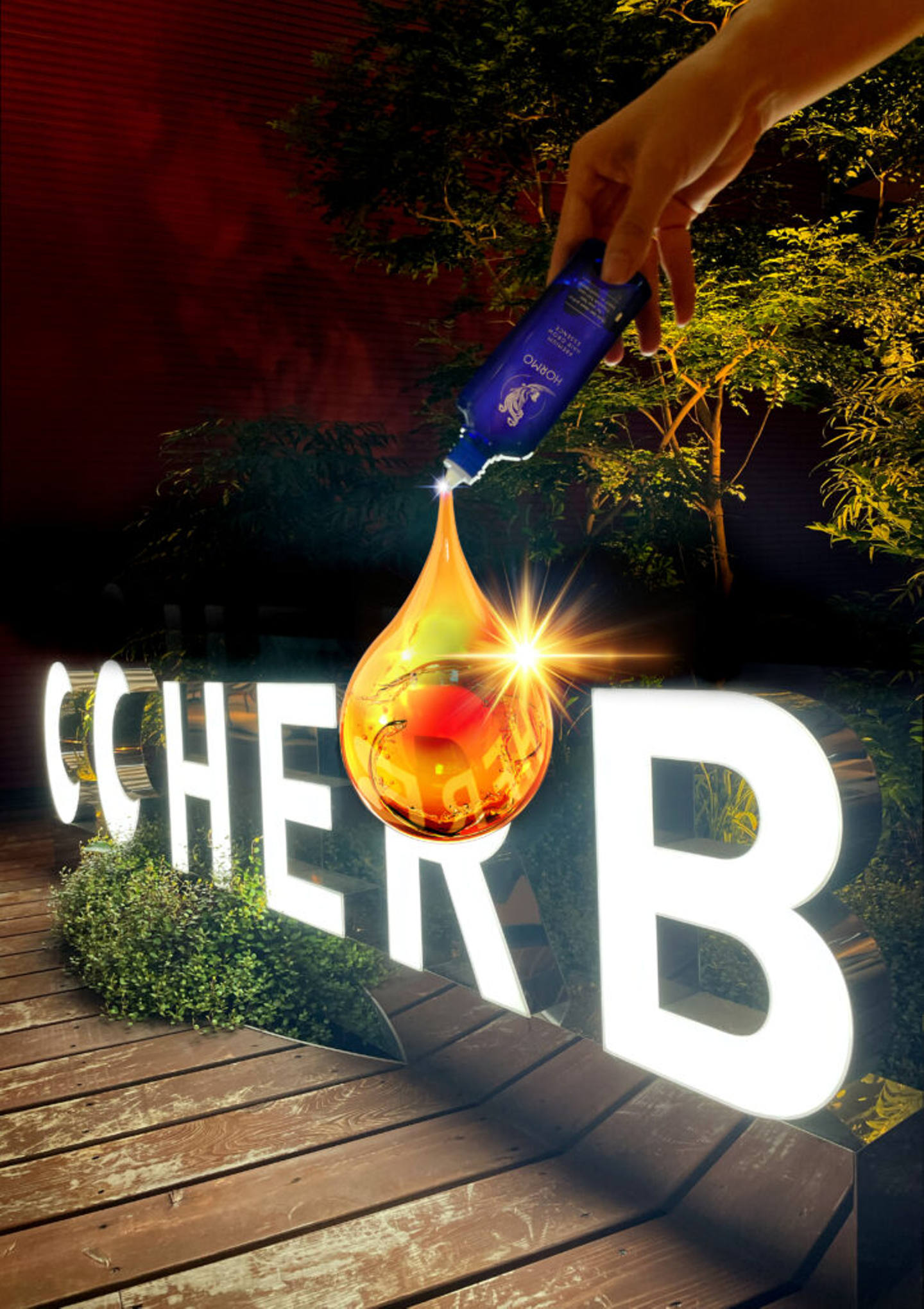 HERB看板の映えスポットに煌めく髪(神)の一滴。加工スキルを駆使し、幻想的な1枚に仕上がっています。そのままメインビジュアルに使えそう!