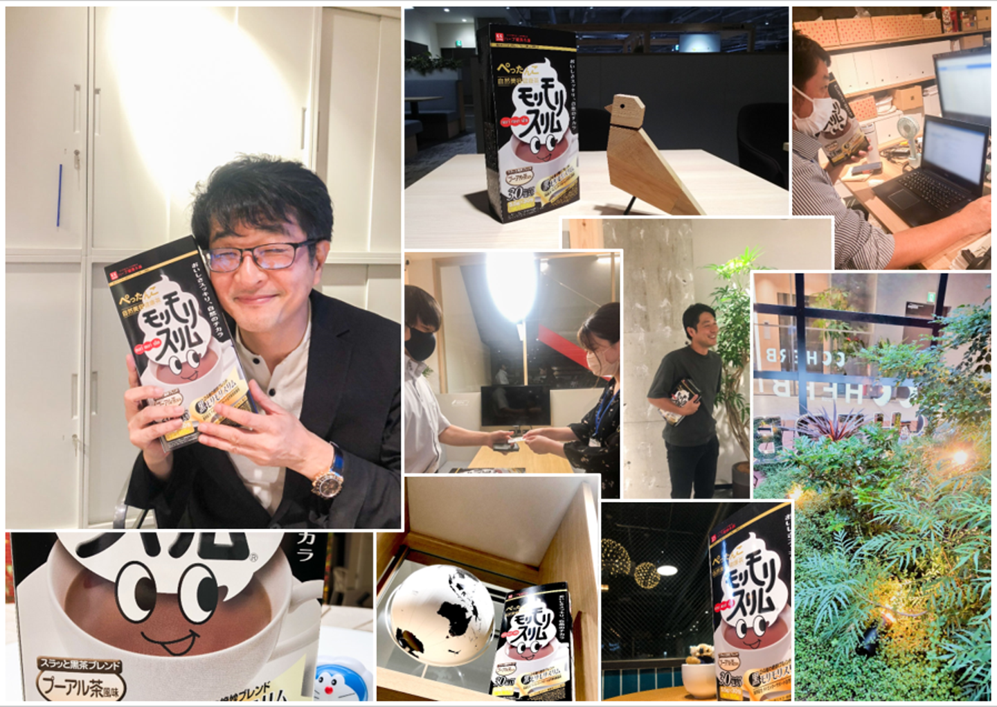 健康茶モリモリスリムが増量サイズに!?計り知れないHORMOのパワーを、ほか商品を使ってチャーミングに表現しました。