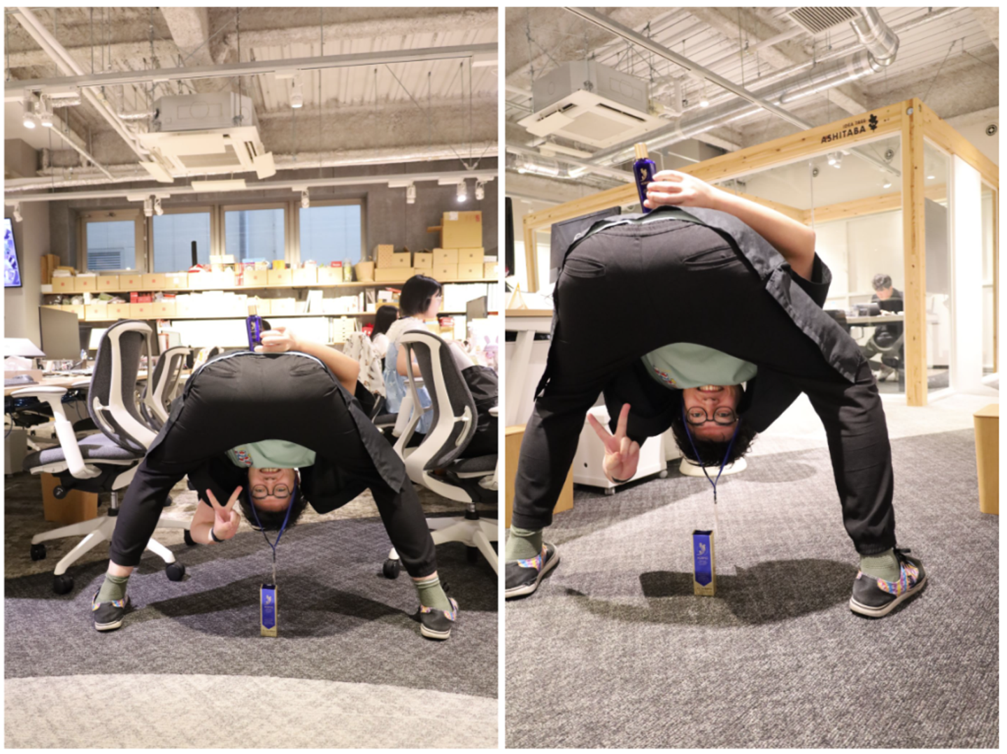 2)必ずハーブ健康本舗の事務所内で撮影すること。執務スペースや5階のカフェなど、社内のさまざまな場所で撮影可能。