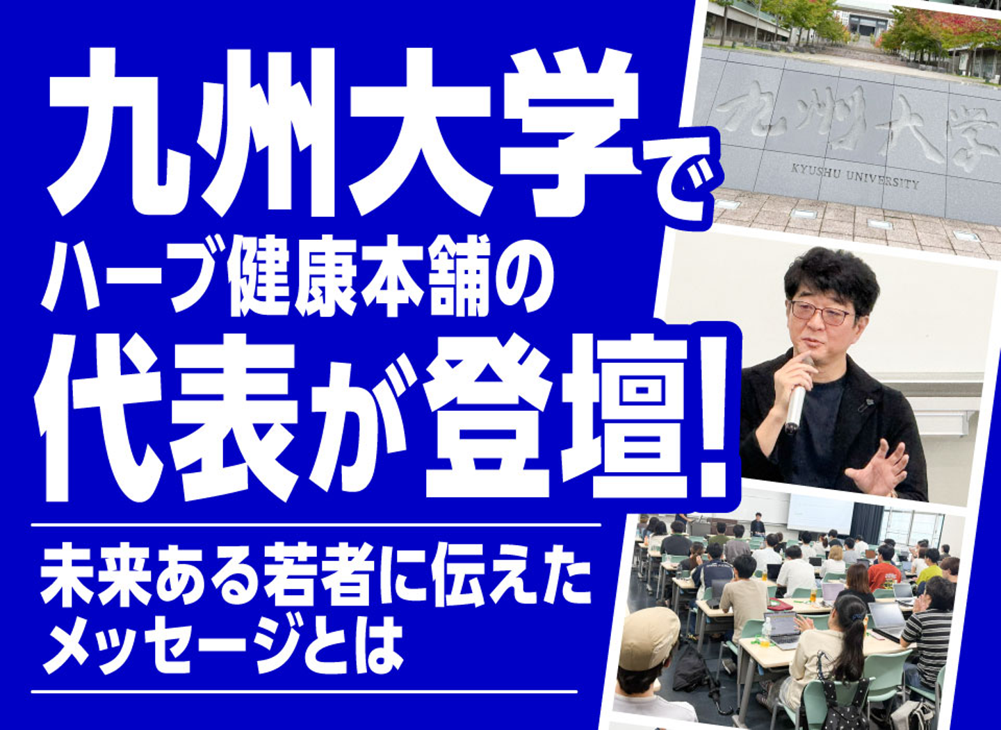 3月には、ハーブ健康本舗の本社がある福岡を代表する教育機関・九州大学の新卒向けオンライン説明会に参加。社内から情報発信し、会社の魅力をアピールしました。