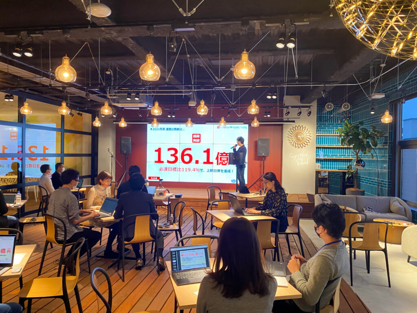 永松です。2021年度もたくさんのお客様に支えられ、また社員の皆さんの頑張りもあり、136.1億円の売上を達成することが出来ました。2020年度の104億円の売上から大きく伸長できました。