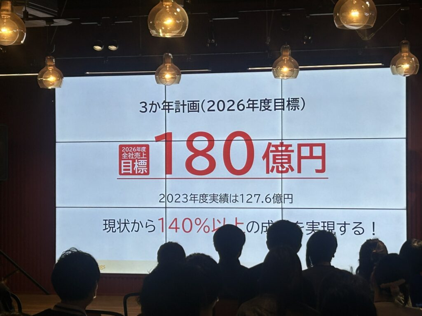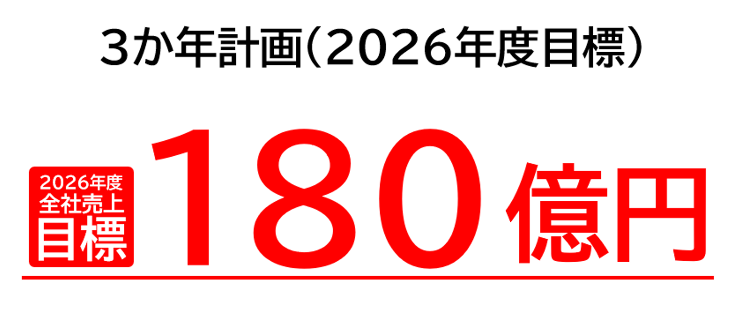 年商180億円は、現状の127.6億円から140%以上の成長が求められる、高い目標値です。新しい3ヶ年計画を達成するためには、現状から大きくステップアップする必要があります。