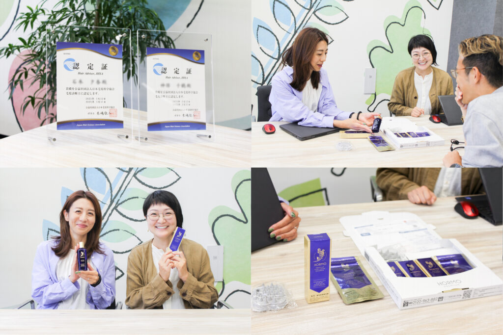 お客さまに喜んでいただける高品質なものづくりを進めるために、「管理栄養士」の資格をもったメンバーに監修として開発に加わってもらったり、「毛髪診断士」の資格を取得し開発に活かしたりする取り組みをはじめているハーブ健康本舗。