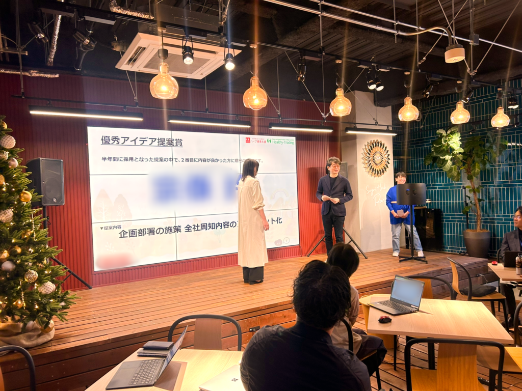 昨年11月末、下期に提案されたアイデアを各部署の責任者で協議し、優れた提案をしてくれたメンバーに対し「アイデア提案大賞」を授与することに。