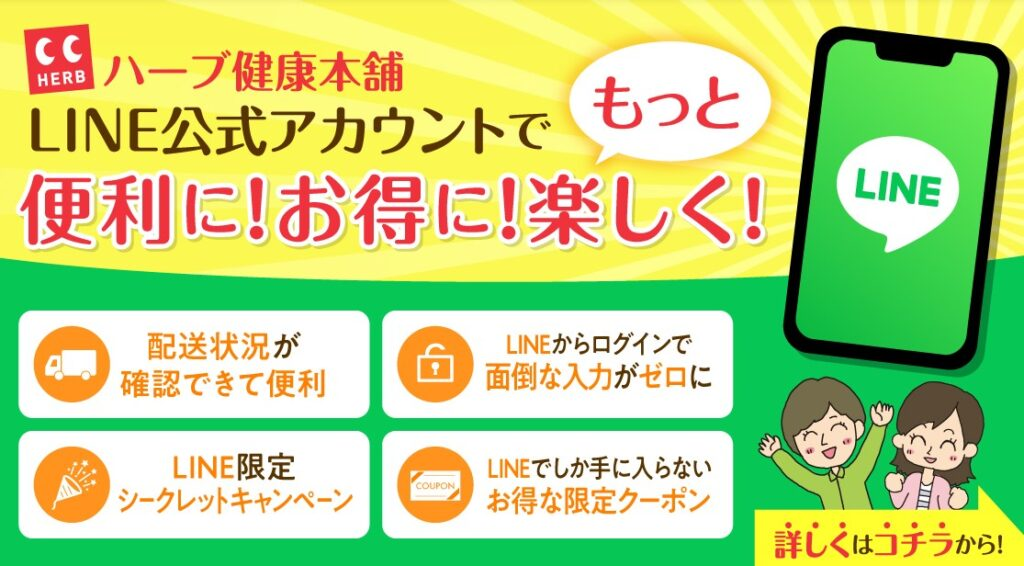 LINE利用の状況を踏まえ、2023年1月より、 ハーブ健康本舗のLINE公式アカウントが本格運用を開始!配送状況が手軽に確認できたり、シークレットキャンペーンが開催されたりと、お友だち追加いただいたお客さまが便利に使っていただけるよう、日々バージョンアップしています。