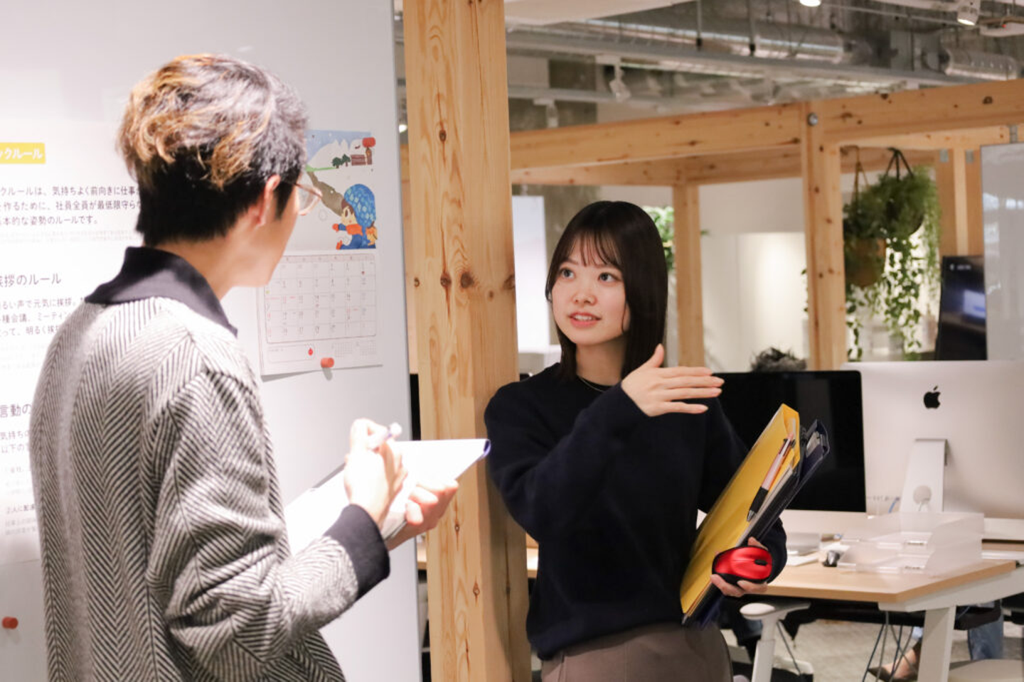この日は採用面接の予定がなかったため、山川さんにポイントを伺いつつ、練習で社内案内を体験することに!