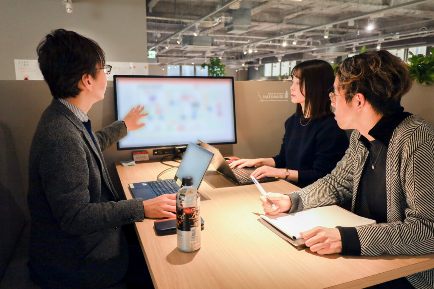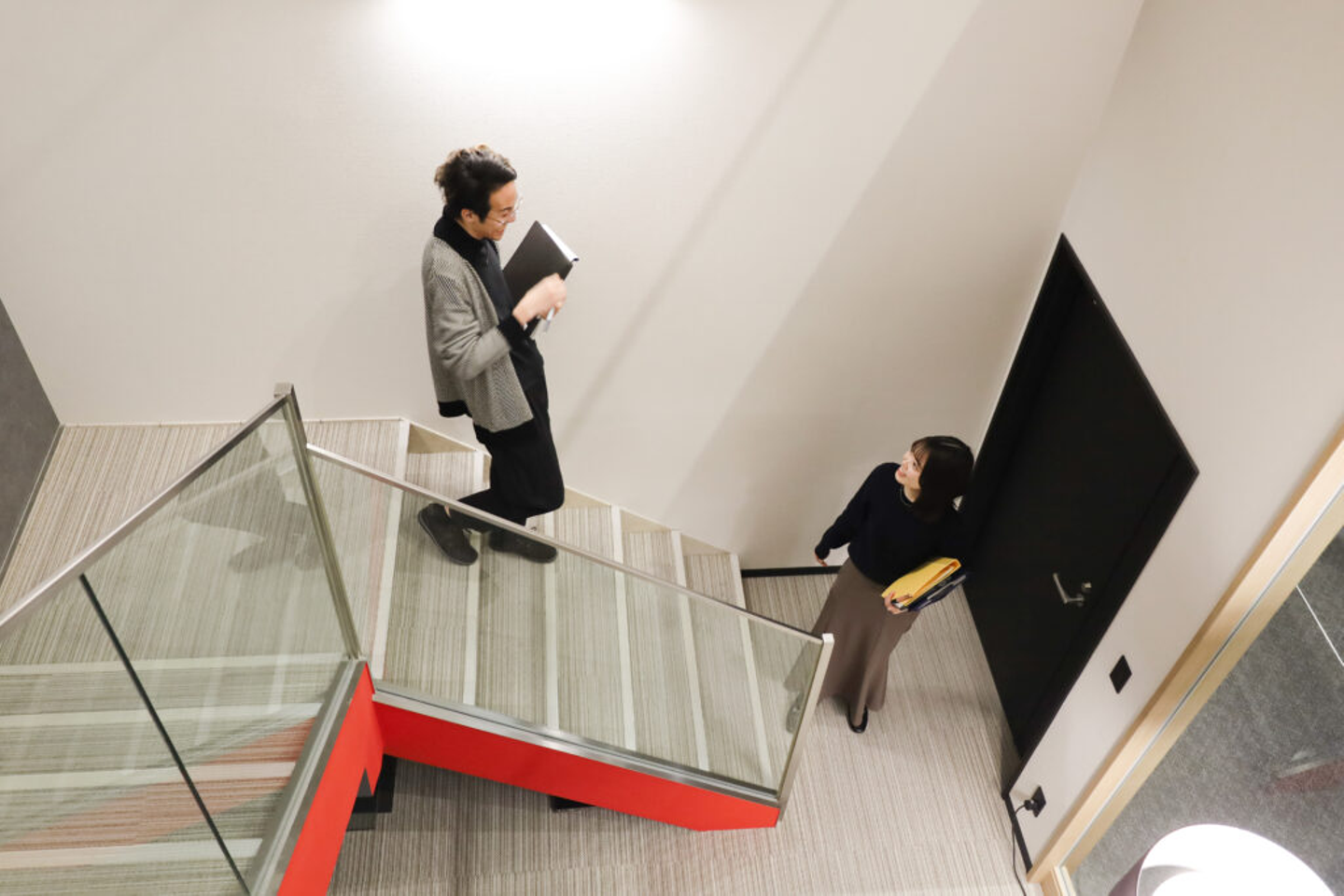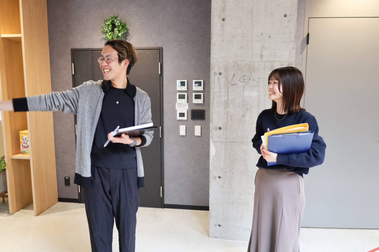 事務所内を一緒にまわって、建物内のオープンな雰囲気や、はたらいているメンバーの空気感を、実際に感じていただきます。