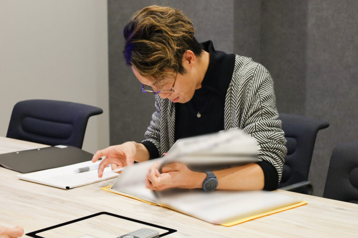 海外事業の現状や取り組みをすり合わせた上で、何が課題となるのか。課題をクリアするために、どういう組織が理想的なのか。資料に目を通しながら、細かくヒアリングします。