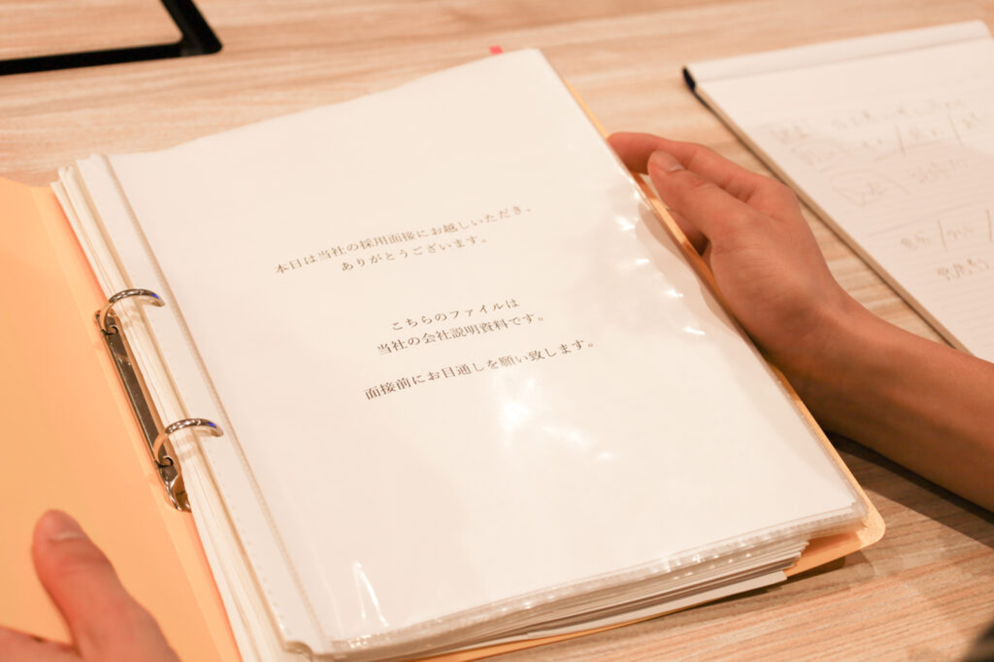 もうひとつ、ハーブ健康本舗の採用面接におけるこだわりが、面接時の会社案内。