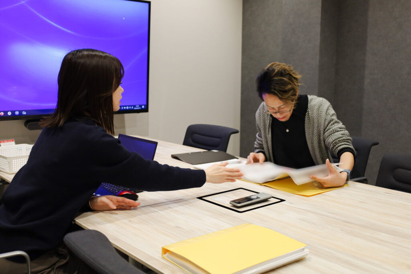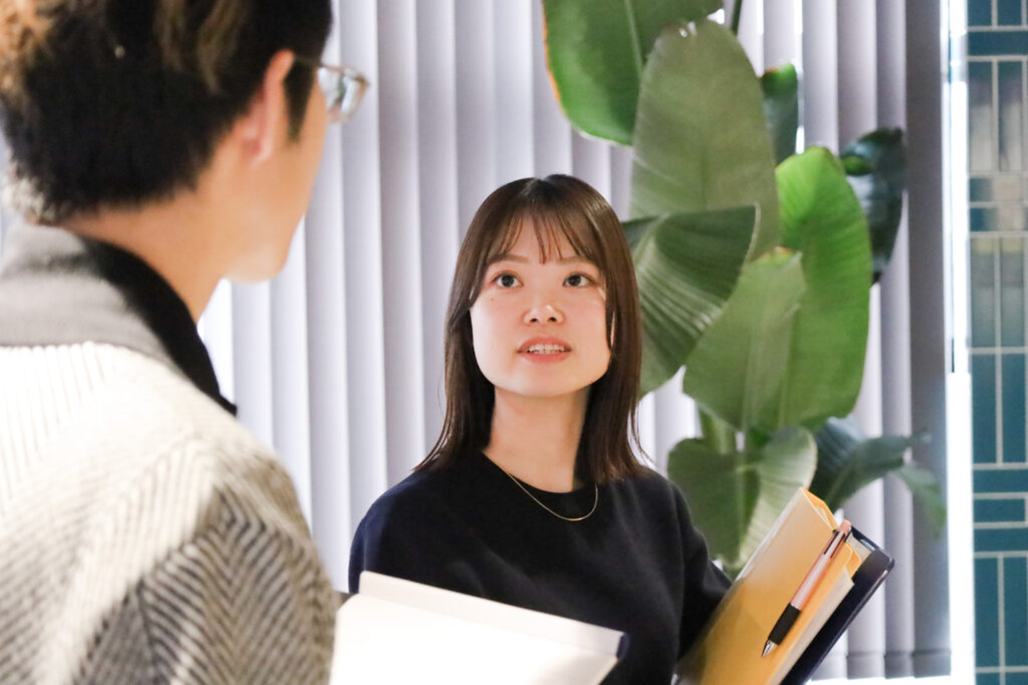 部署メンバーへのヒアリングや求職者への実技テスト・オフィス案内をはじめ、人事・総務の仕事ではたくさんの人とのコミュニケーションが求められます。