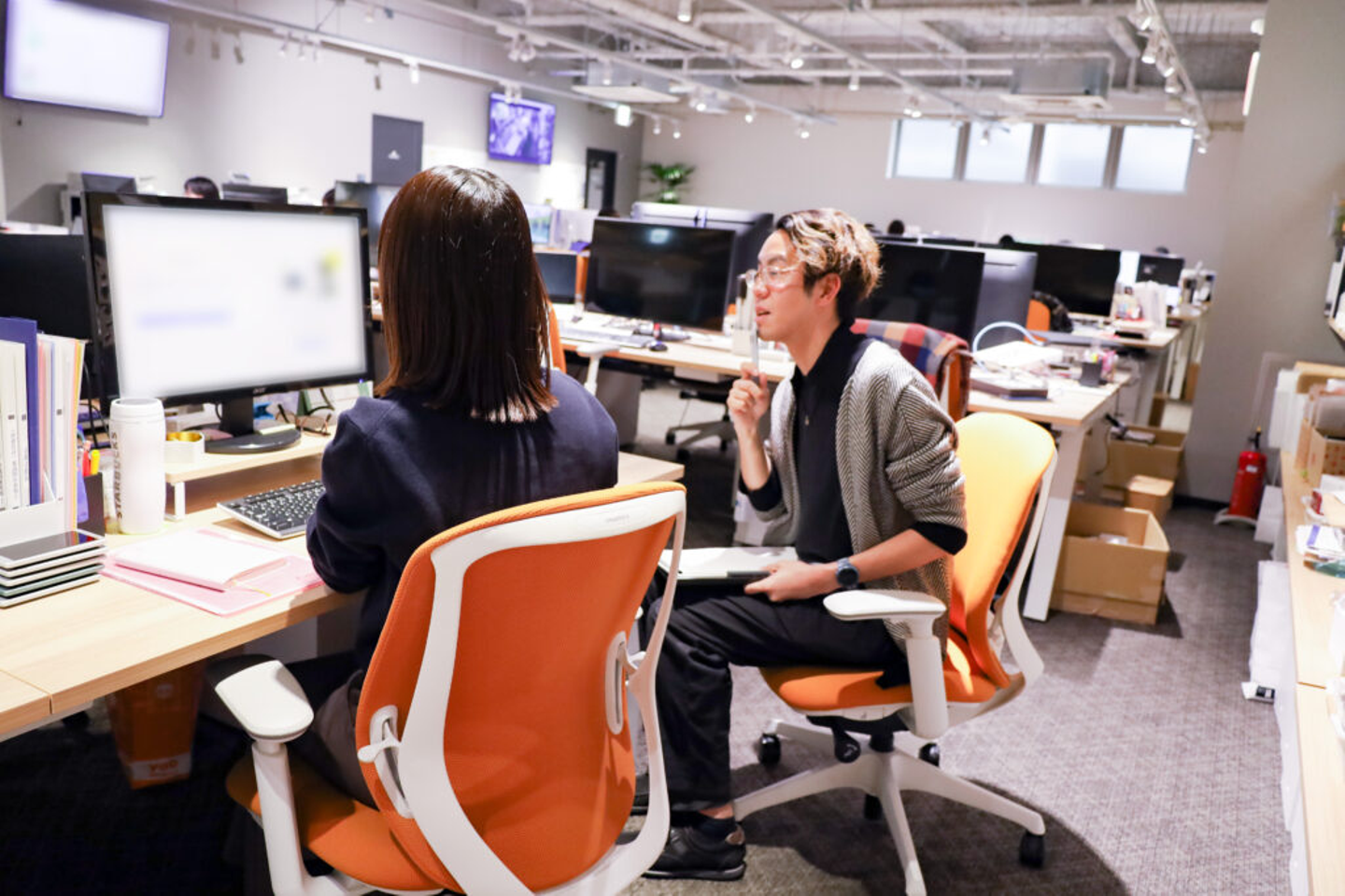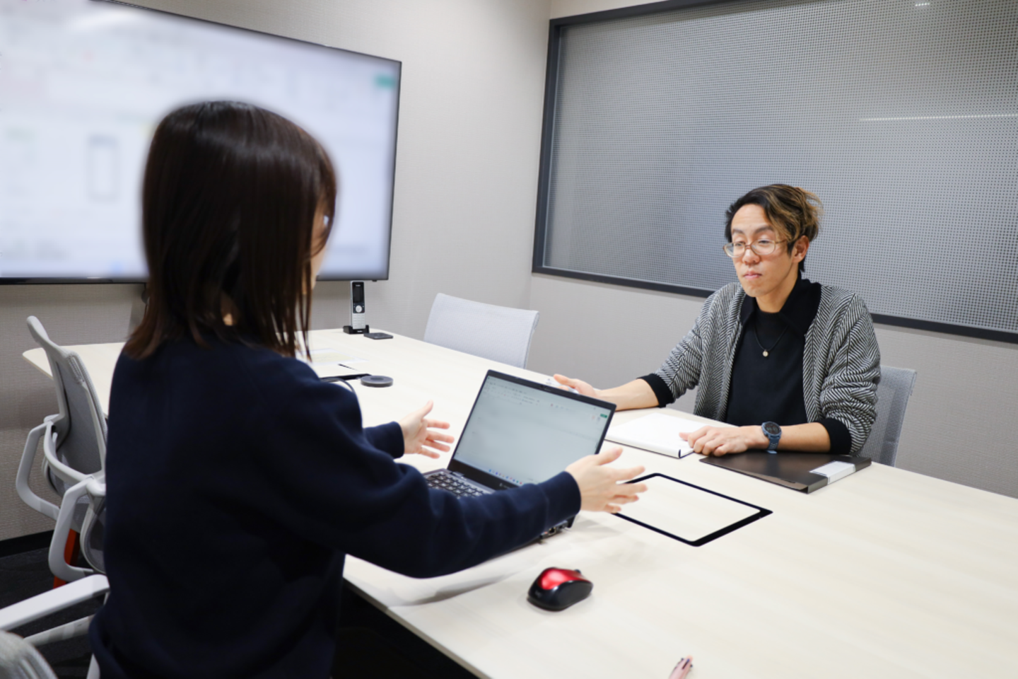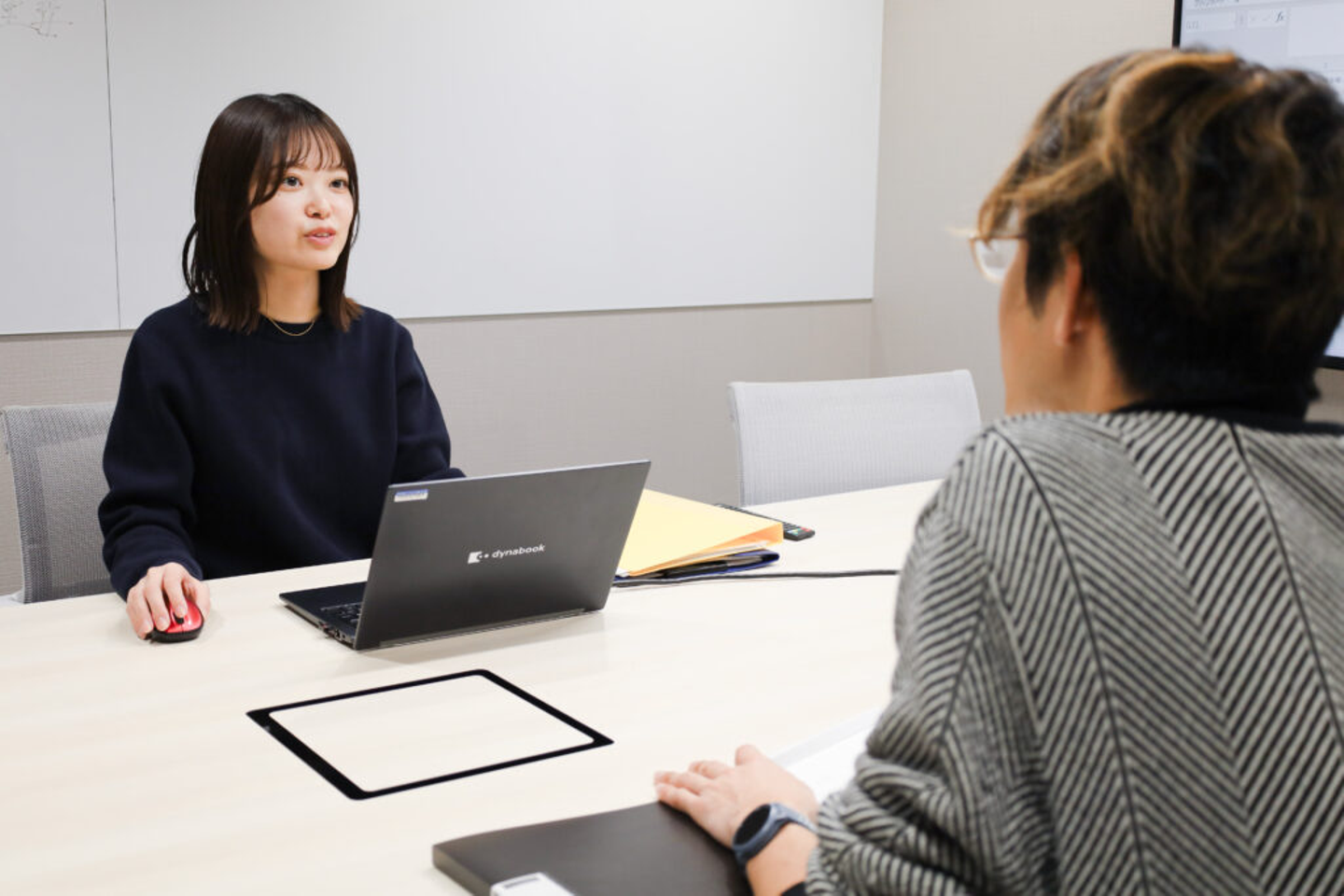 日々の業務を進める中で出てくる組織の課題にいち早く気付くことは、人事・総務の重要な役割のひとつ。半期ごとの評価と別に、部署のリーダーと必要に応じて時間を作り、ヒアリングをしています。