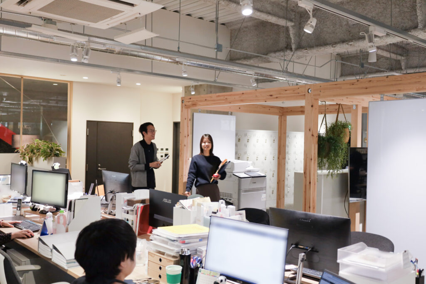 4階の執務スペースへ。実際にメンバーがはたらいている様子を直接見てもらうことで、なかなかイメージがつきにくい職場の雰囲気をダイレクトに感じてもらいます。