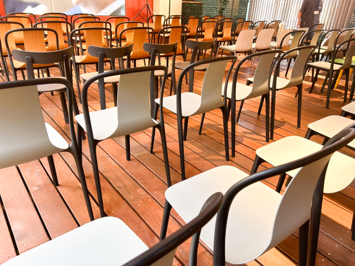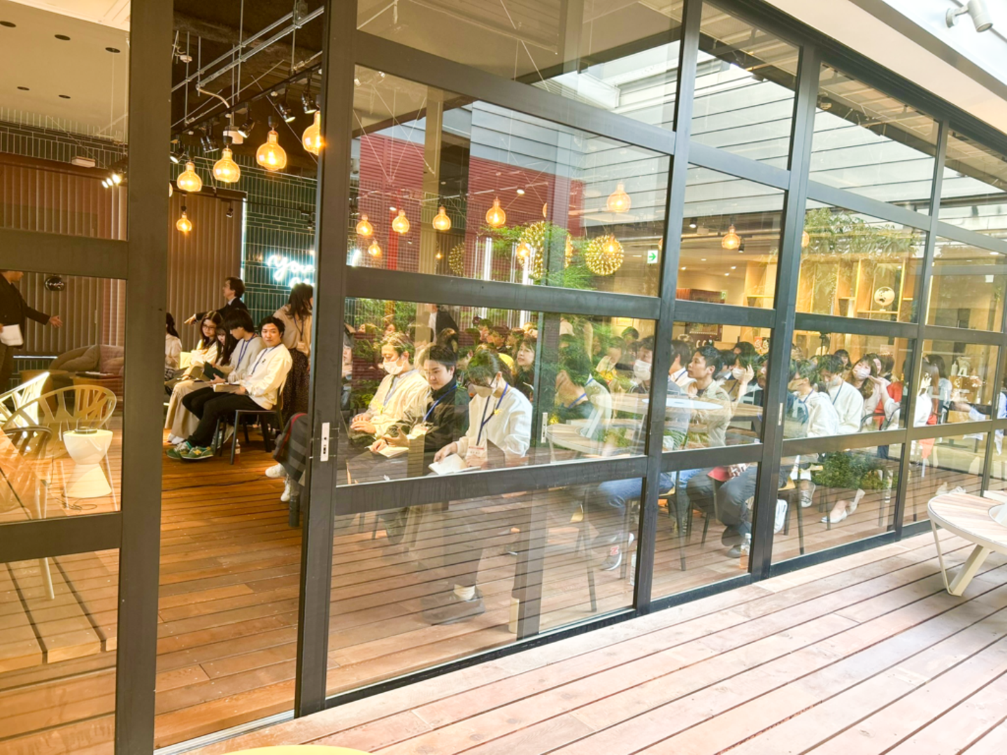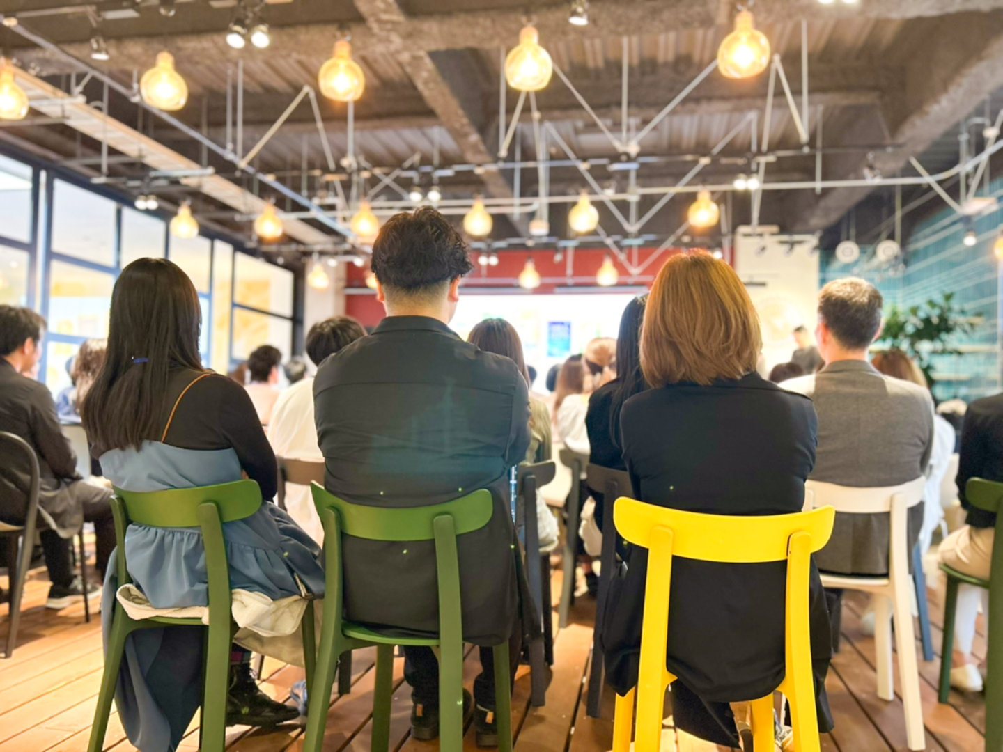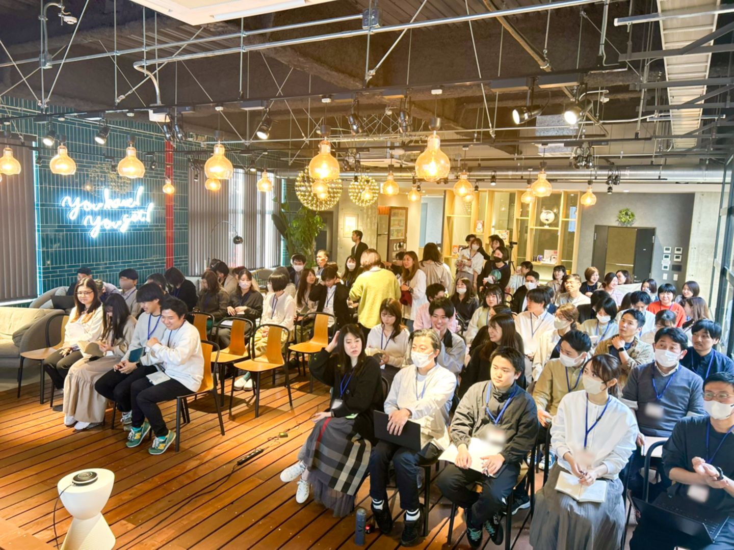 3ヶ年計画がスタートして最初の期が終わる4月末、全社員が5階・カフェスペースに集まり、経営計画発表会が開催されました。
