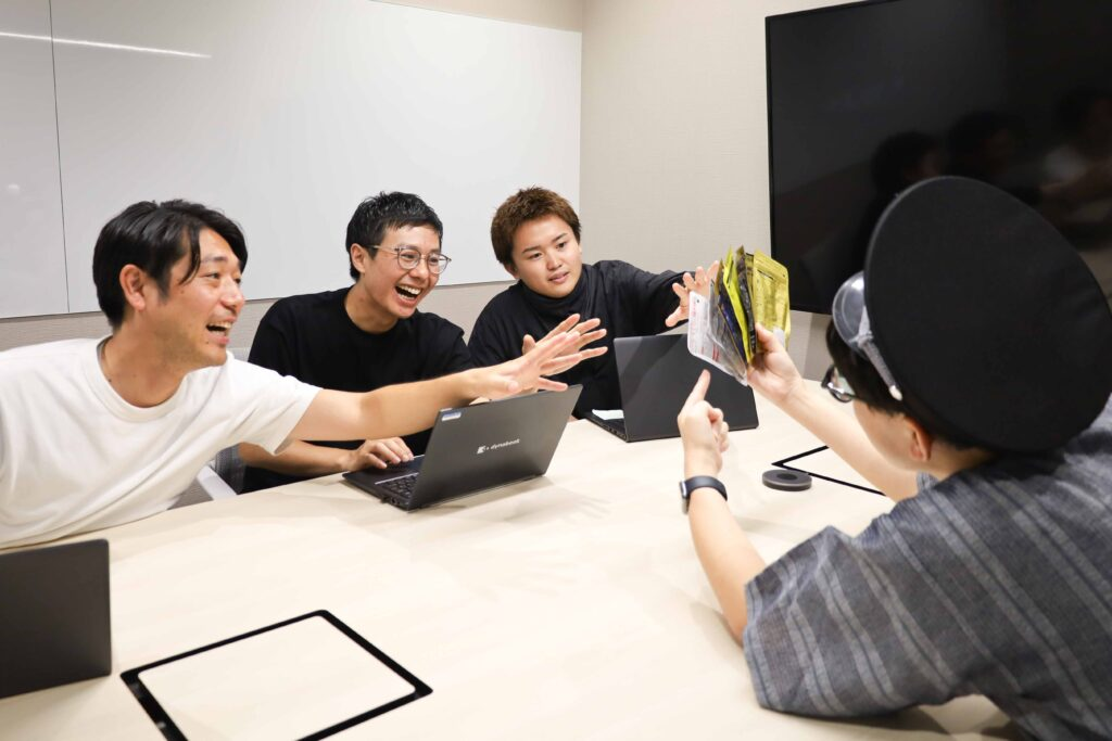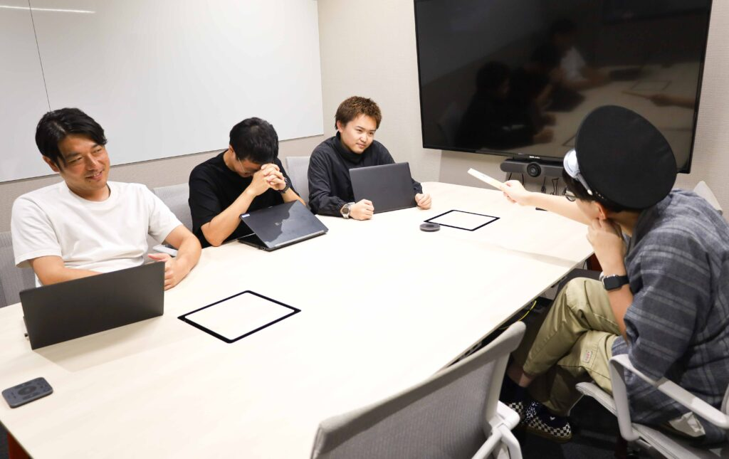 4階・執務室。会議スペースの一角で、ひとりでも多くのお客さまに価値を届けるべく、議論が交わされている。この日は国内卸・ECモール事業のメンバーが、今後の販売戦略についてミーティングをしていた。