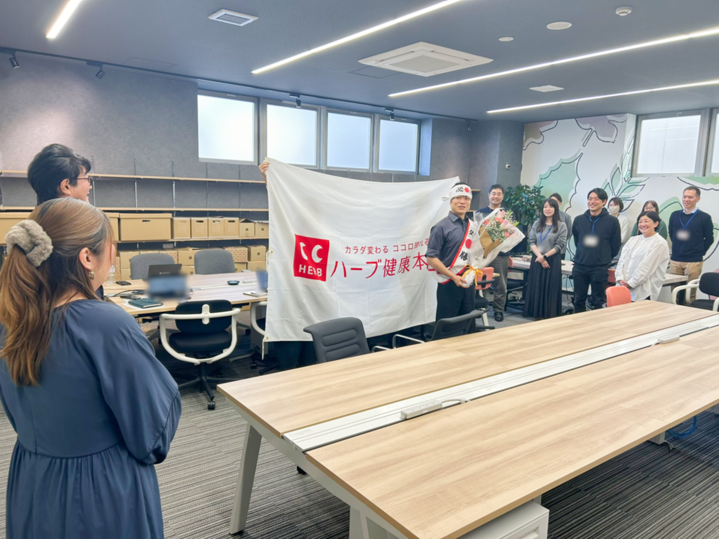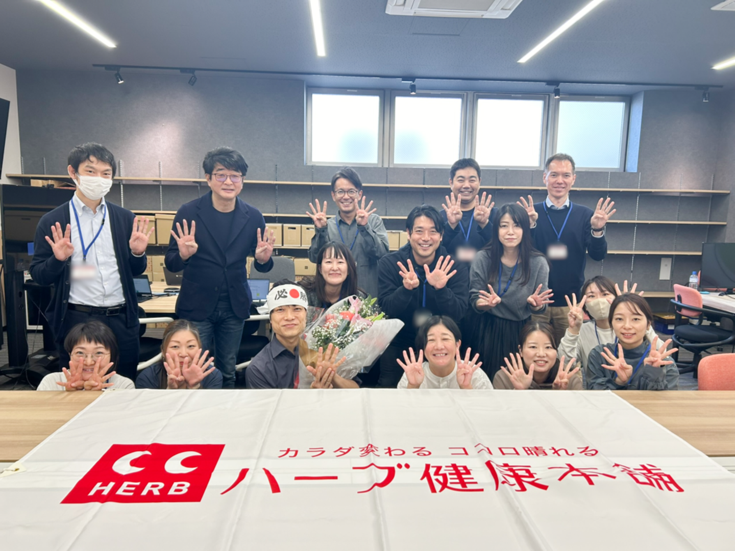会議スペースには、ハーブ健康本舗の代表・永松をはじめ、部署内外のメンバーが勢ぞろいしていました。